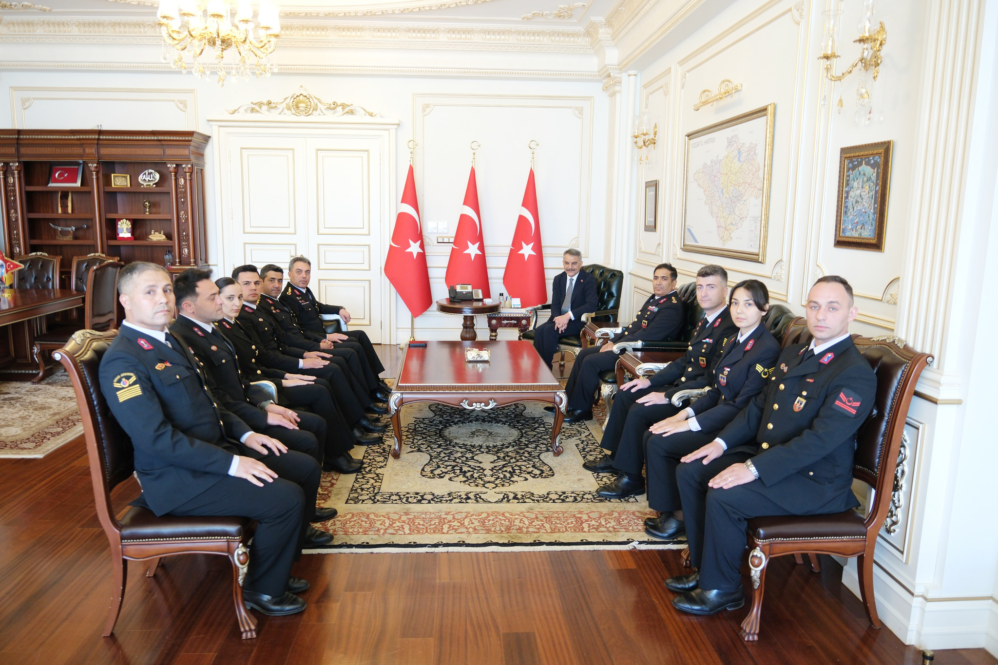 Yozgat Valisi Mehmet Ali Özkan, Jandarma Teşkilatı’nın 186. kuruluş yıl dönümü dolayısıyla İl Jandarma Komutanı Jandarma Kıdemli Albay Cezmi Yalınkılıç ve beraberindeki heyeti makamında kabul etti.