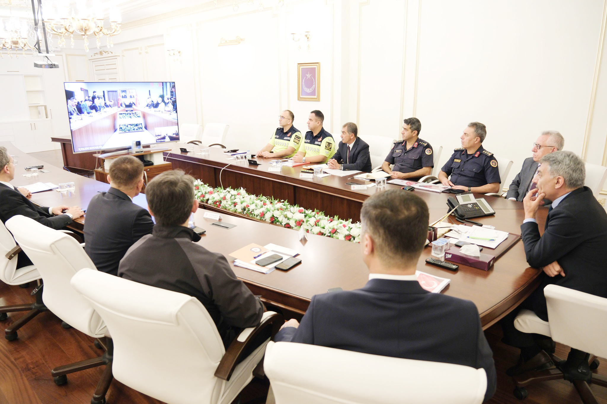 Toplantıya, İçişleri Bakanlığı ve Ulaştırma ve Altyapı Bakanlığı’nın üst düzey yetkililerinin yanı sıra 81 il valisi de eş zamanlı olarak katılım sağladı.