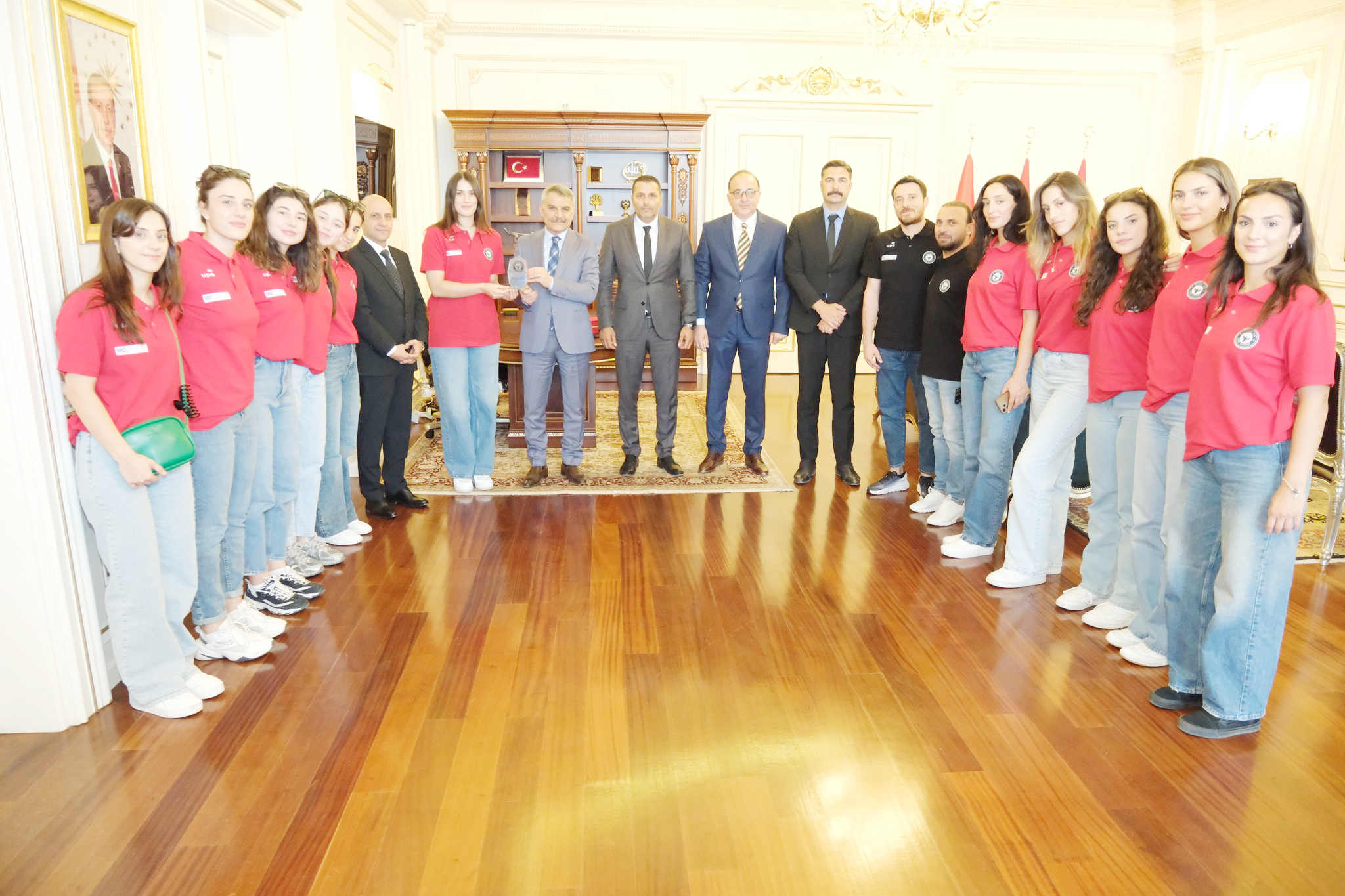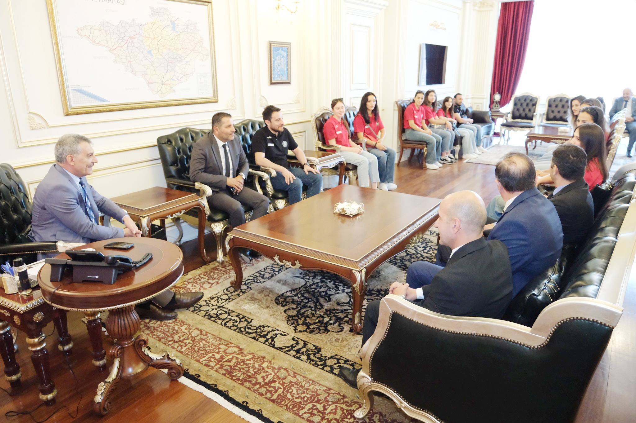 Yozgat Valisi Mehmet Ali Özkan, Kadınlar Hentbol 1. Ligi’nde Yozgat’ı temsil edecek olan Yozgat GSK Kadın Hentbol Takımı oyuncuları, teknik heyeti ve yöneticilerini makamında kabul etti.