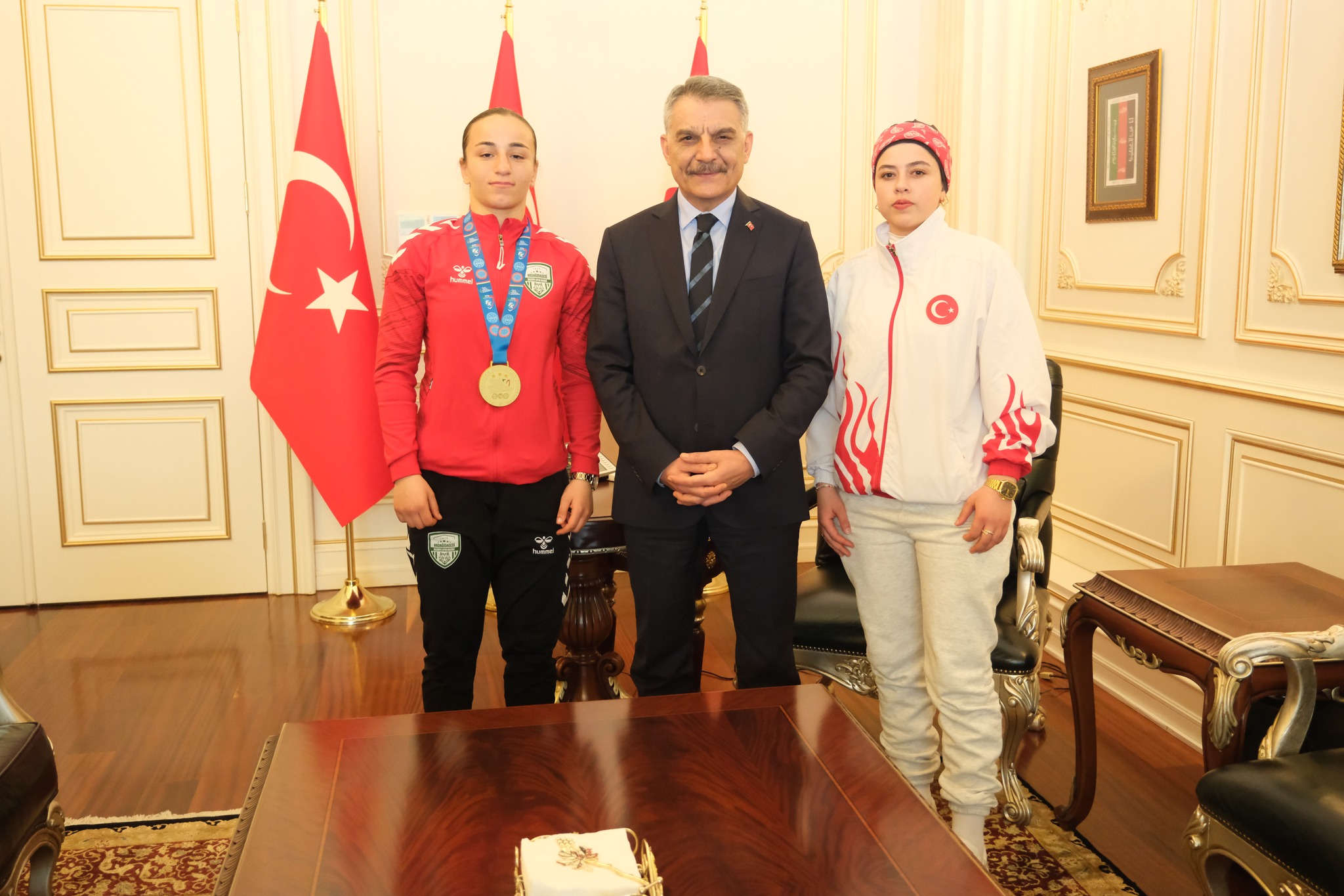 Sporcularla bir süre sohbet eden Vali Özkan, başarılarının devamını dileyerek her iki sporcuyu da tebrik etti. Ziyaret, hatıra fotoğrafı çekimiyle sona erdi.