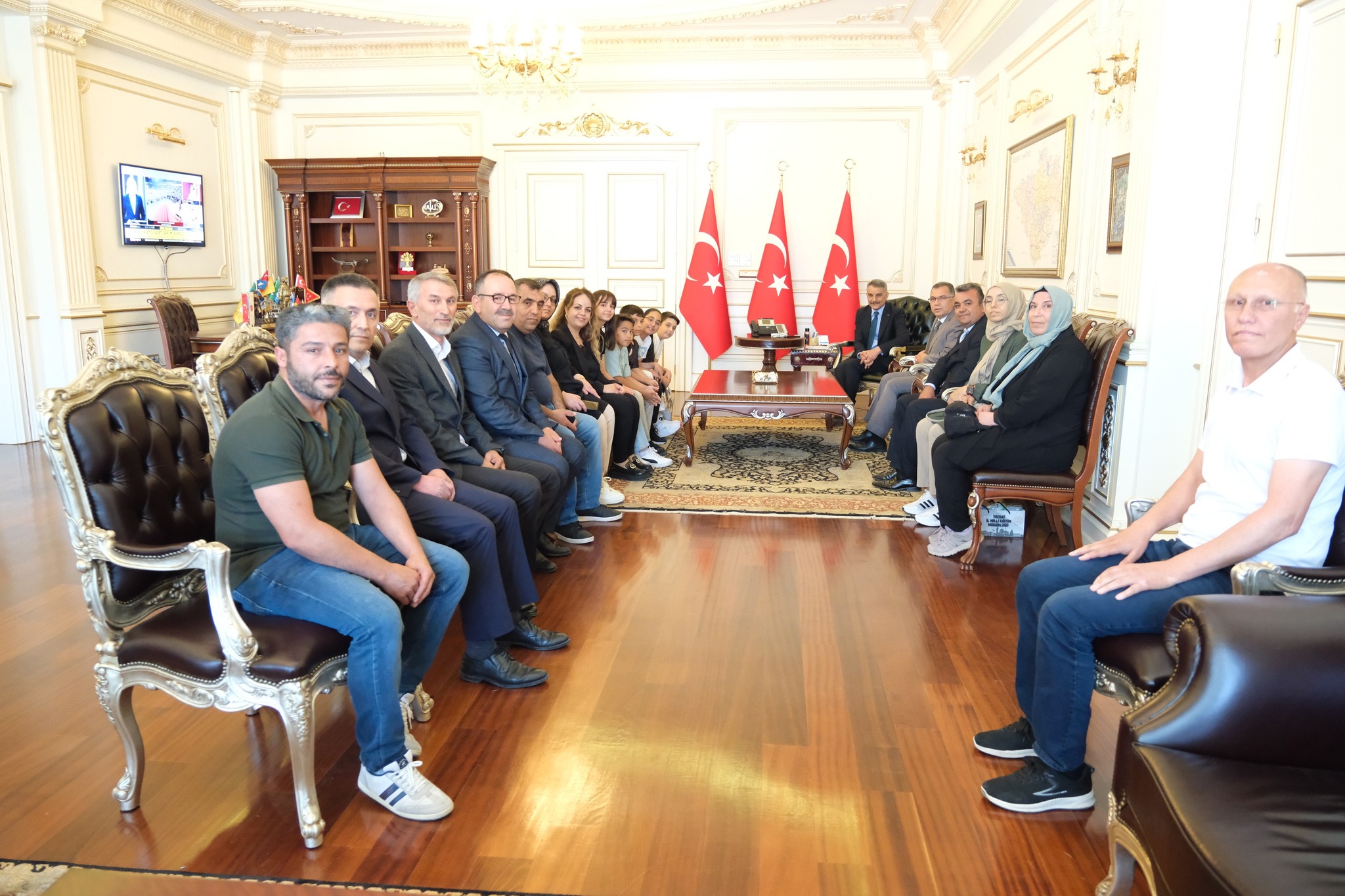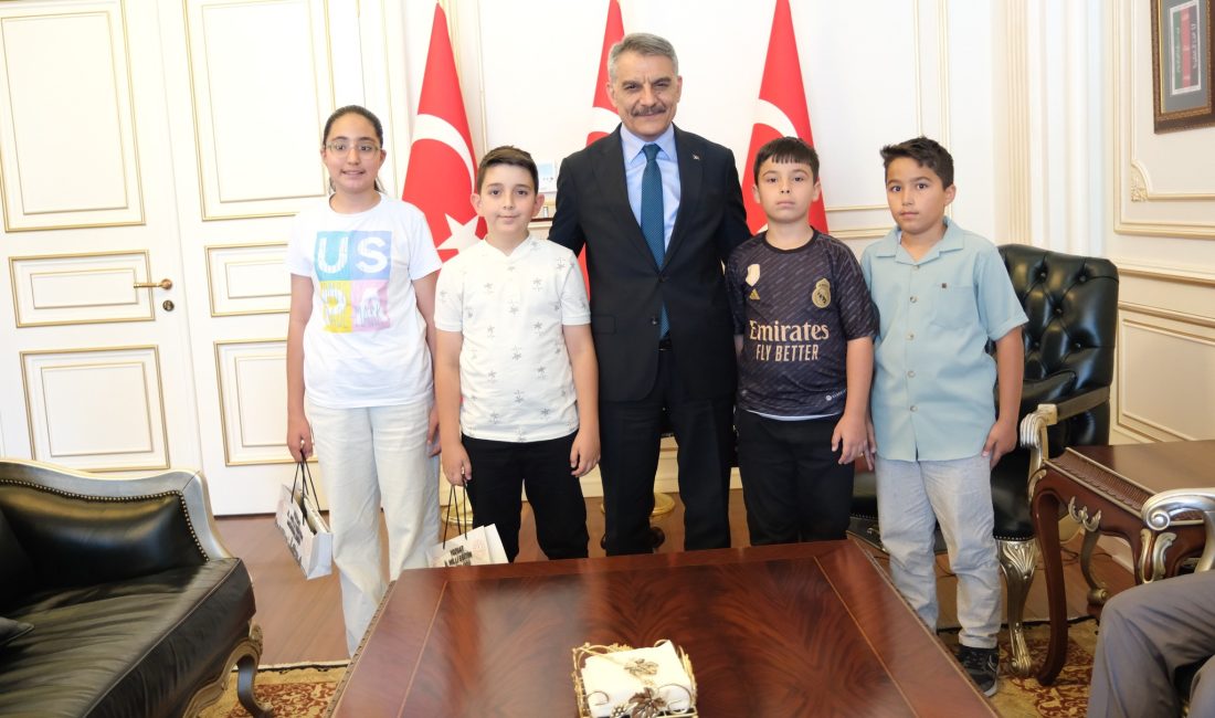 Yozgat Valisi Mehmet Ali Özkan, bursluluk sınavında tam puan alarak Türkiye birinciliğini paylaşan dört öğrenciyi makamında misafir etti.