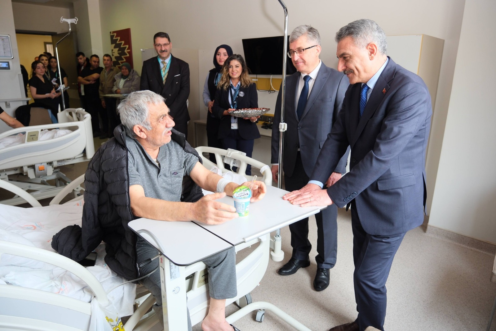 Bayramlaşma ziyaretleri kapsamında Yozgat Şehir Hastanesi’ni de ziyaret eden Vali Özkan, sağlık çalışanları ve hastalarla bayramlaştı. Hastalara geçmiş olsun dileklerini ileten Özkan, sağlık çalışanlarına da görevlerinde kolaylıklar diledi.