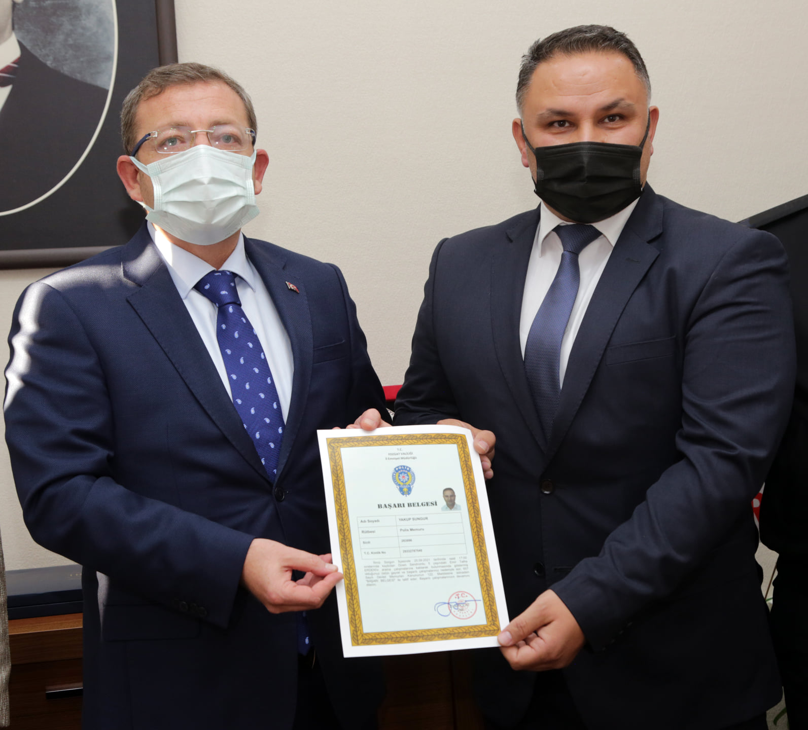 Yozgat Valisi Ziya Polat, geçtiğimiz günlerde Sorgun İlçesinde kaybolan 5 yaşındaki down sendromlu Emir Talha Erden’in arama çalışmalarına katılarak bulunmasını sağlayan polis memuru Yakup Sungur’a göstermiş olduğu üstün gayretten dolayı Başarı Belgesi verdi.