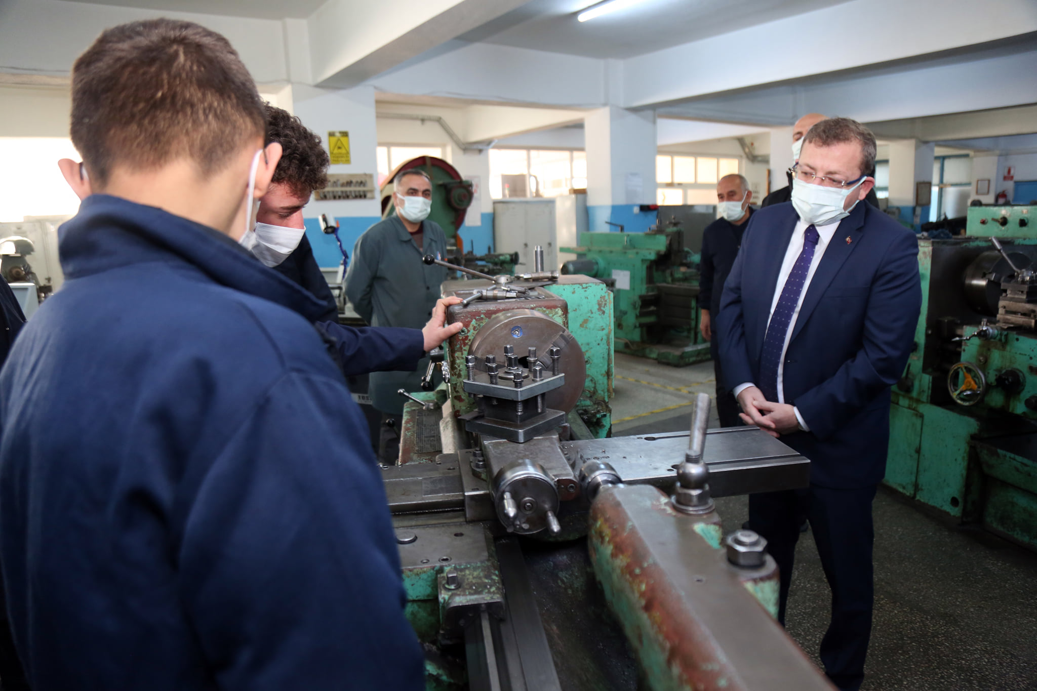 Yozgat Valisi Ziya Polat, Mimar Sinan Mesleki ve Teknik Anadolu Lisesi’ni ziyaretinde eğitim atölyesini gezerek, “Meslek lisesi memleket meselesi diyoruz.”dedi.