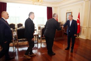 Ramazan Bayramını Hatay’ın Hassa ilçesinde depremzedeler ile birlikte geçiren Yozgat Valisi Ziya Polat, Bayram sonrası ilk mesai gününde valilikte kurum müdürleri ve personel ile bayramlaştı.
