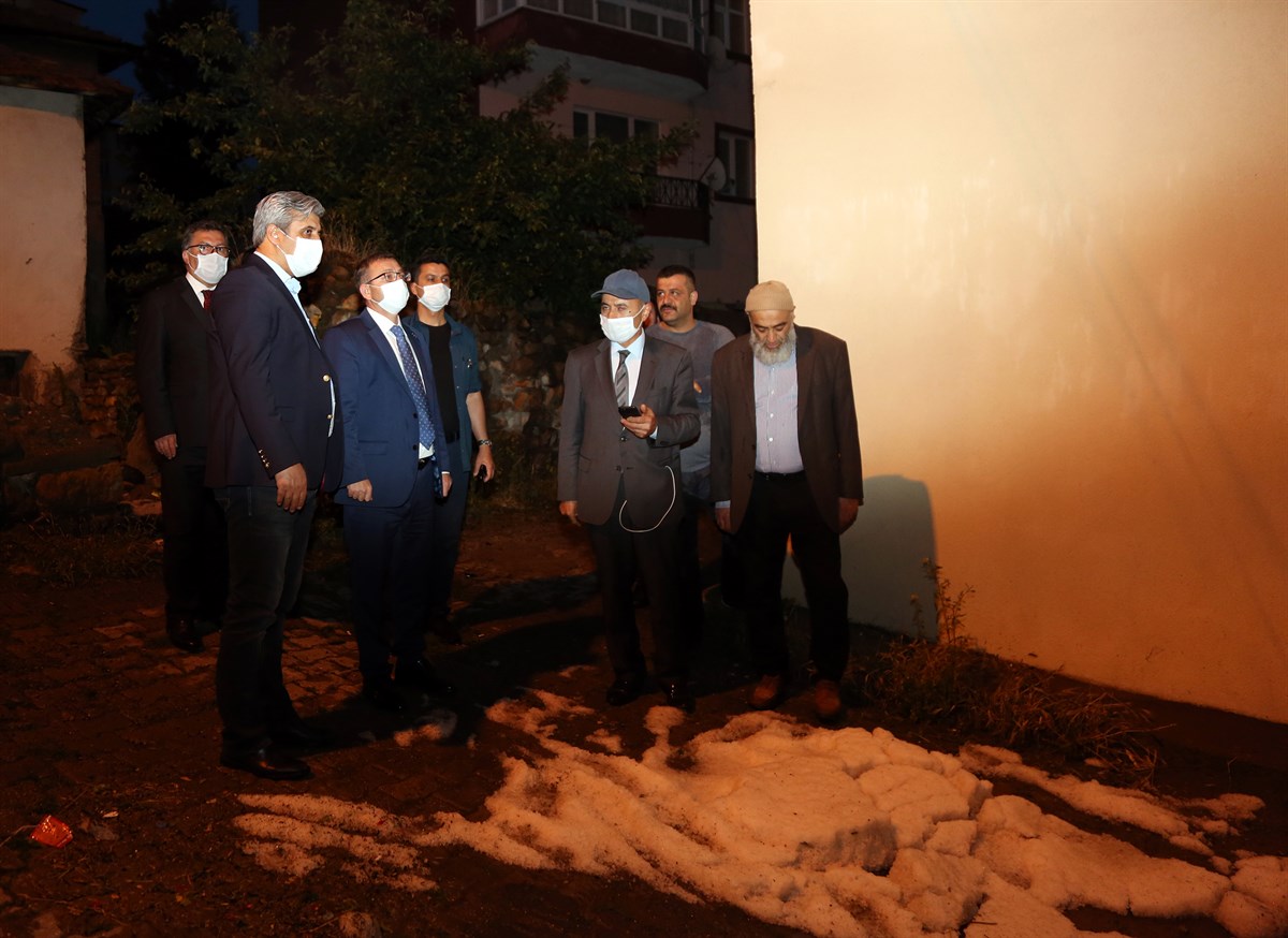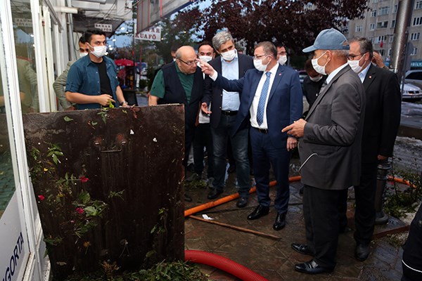 Yozgat Valisi Ziya Polat ve Belediye Başkanı Celal Köse ile birlikte , Yozgat merkezinde dün akşam saatlerinde meydana gelen şiddetli yağış ve dolunun neden olduğu su baskını sonrası zarar gören iş yerlerinde incelemelerde bulundu.