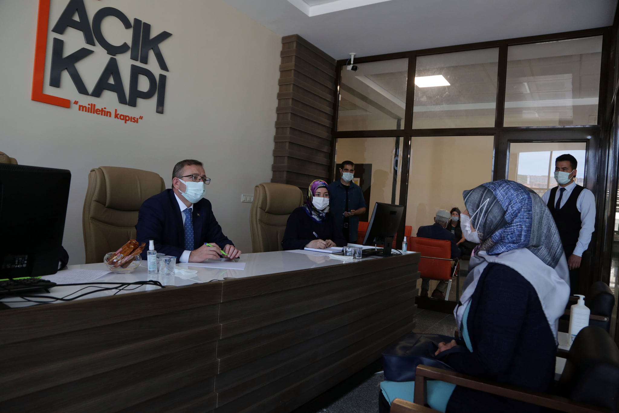 Valilik Binası giriş katında bulunan Açık Kapı’da tek tek vatandaşların taleplerini dinleyen Vali Polat, kendisine iletilen sorunların çözümü noktasında ilgili makamlara talimat verdi.