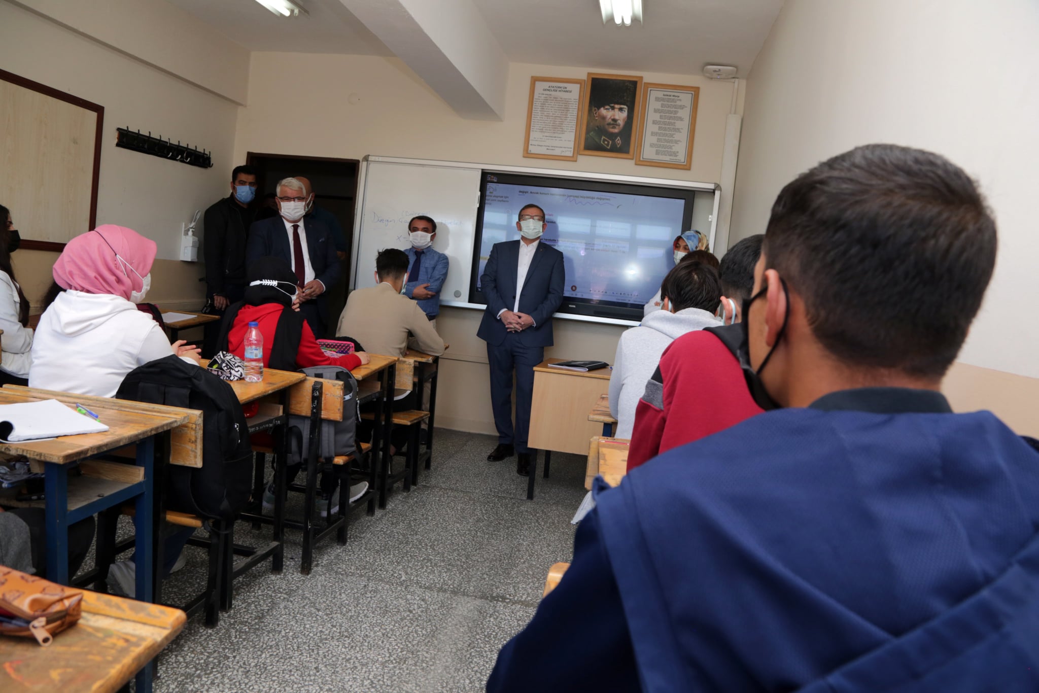 Yozgat Valisi Ziya Polat, Şehit Durmuş Delibaşı Anadolu Lisesi’ni ziyaret ederek 12’nci sınıfların derslerine katıldı.