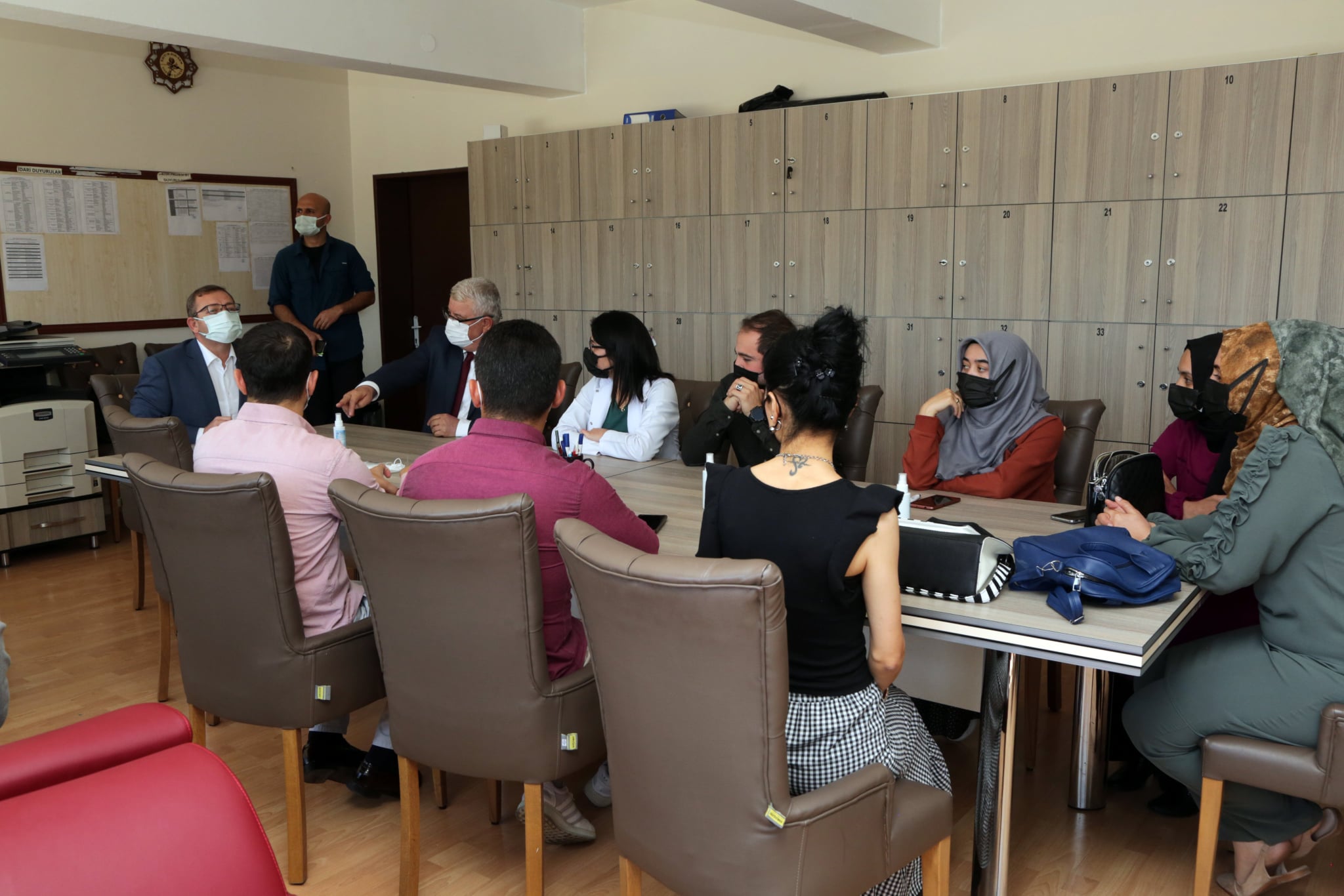 Vali Polat, öğrenci ziyaretinin ardından öğretmenlerle toplantı yaparak, okulun fiziki ve genel durumu eğitim çalışmaları hakkında bilgi aldı. (Ferhat Özer)