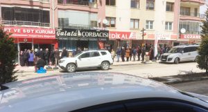 Yozgatlı vatandaşlar Yozgat Et ve Süt Kurumu satış mağazasından ucuz et alabilmek için sabahın erken saatlerinde sıraya girerek mağaza önünde uzun kuyruklar oluşturuyor.