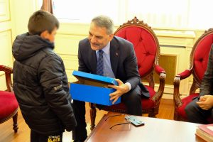 Vali Özkan, sadece sorunları dinlemekle kalmayıp, yarıyıl tatili dolayısıyla öğrencilere de moral veriyor. Kendisine karnesini getiren başarılı öğrencileri makamında ağırlayan Vali Özkan, onları tebrik ederek çeşitli hediyeler verdi. Haber:Yusuf BAĞCI