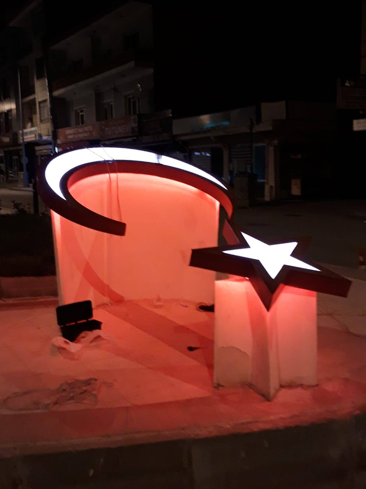 Yerköy’de Belediye tarafından yapılan ay yıldızlı bayrak simgesinin deforme edildiğini