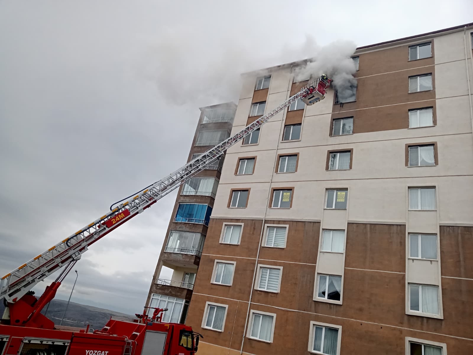 Yozgat’ın Çapanoğlu Mahallesi’nde bulunan 8 katlı bir apartmanın 7’nci katında çıkan yangın, itfaiye ekiplerinin müdahalesiyle söndürüldü. Yangın sırasında dumandan etkilenen bir kadın ile 2 çocuğa sağlık ekipleri tarafından ambulansta müdahale edildi.