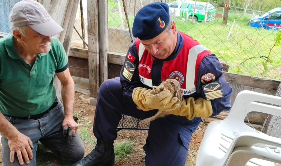 Yaban tavşanı jandarma ekiplerince kurtarıldı