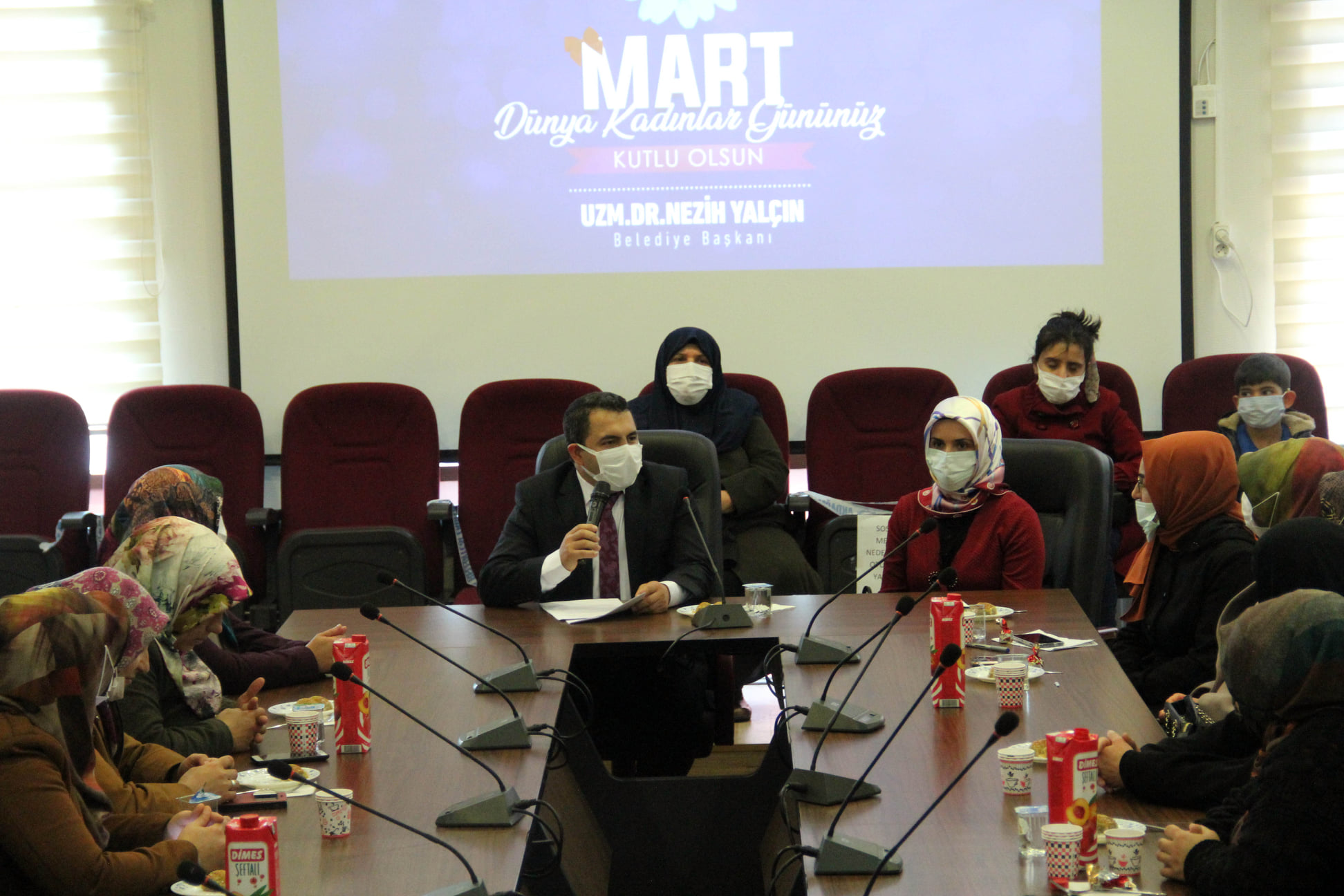 Akdağmadeni Belediye Başkanı Nezih Yalçın 8 Mart Dünya Kadınlar günü dolayısıyla siyasi parti kadın kolları teşkilatıyla bir araya geldi.