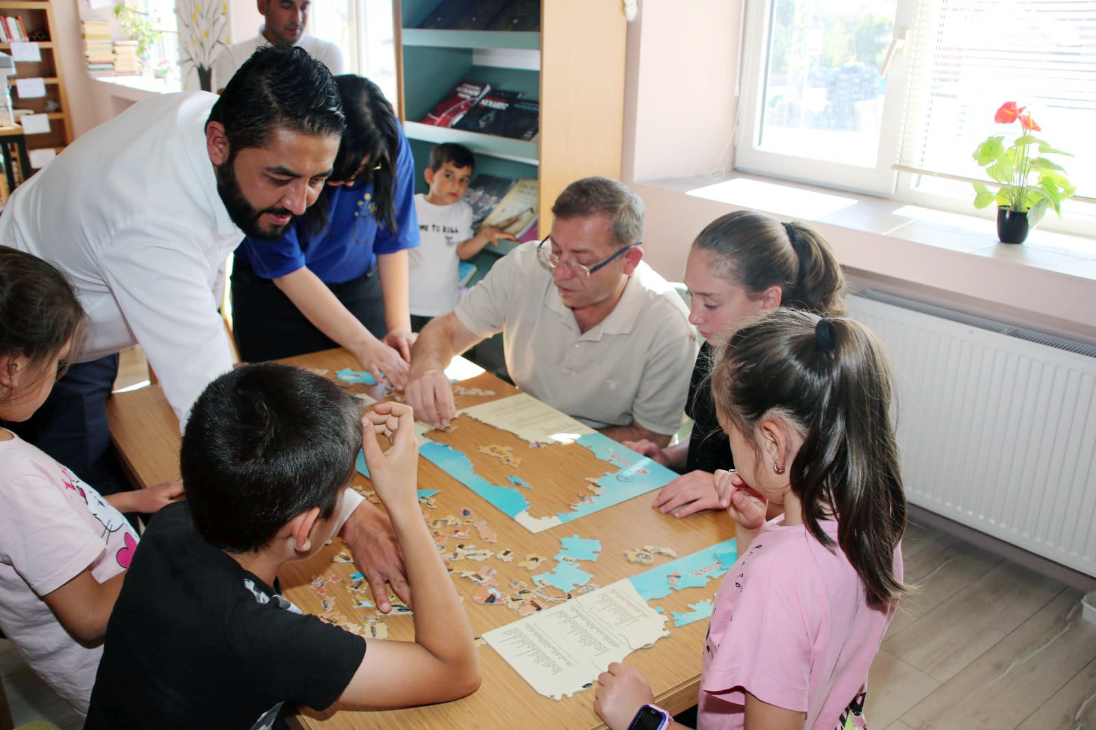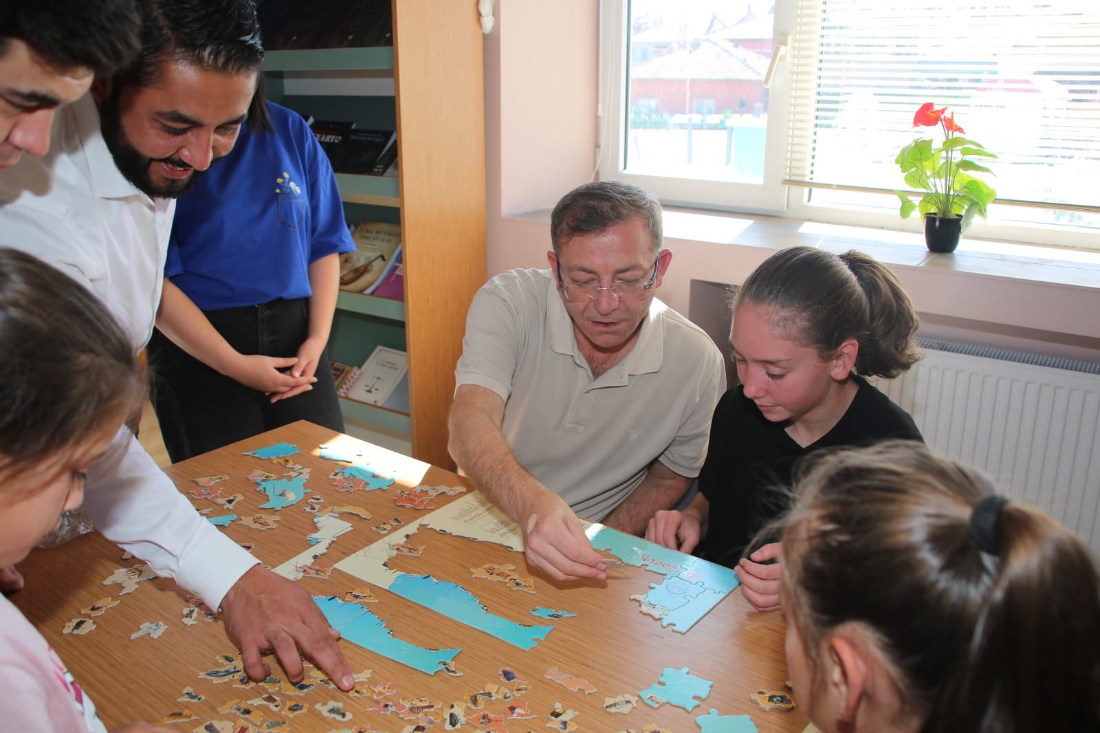 Kütüphanede zaman geçiren çocuklarla keyifli bir sohbet gerçekleştiren Vali Polat, onların kitaplara olan ilgisini ve merakını yakından gözlemleme fırsatı buldu. Vali Polat, çocuklarla birlikte Türkiye haritasını puzzle parçalarını birleştirmelerine yardımcı oldu.