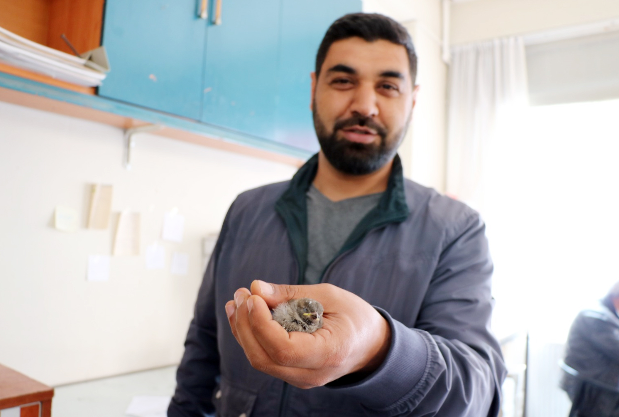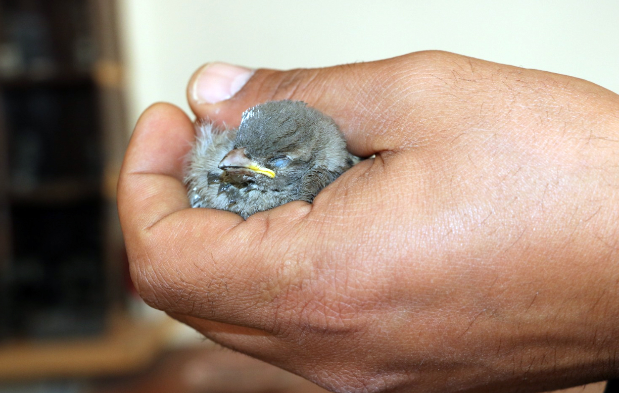Yozgat’ta yuvasından yola düşen serçe yavrusuna gazetemiz muhabiri Alpaslan Demir sahip çıktı.