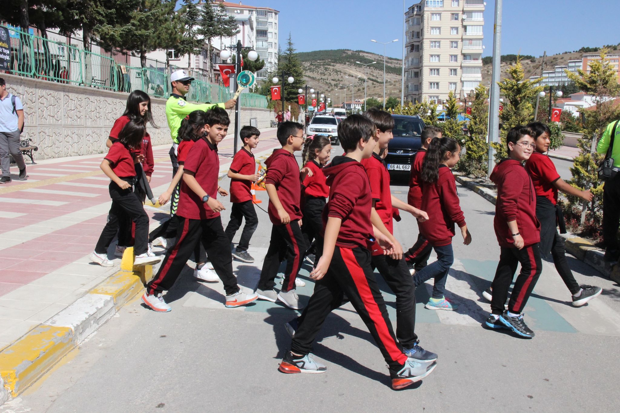 Yozgat Valisi Kadir Çakır, beraberinde Yozgat İl Emniyet Müdürü Murat Esertürk ve İl Jandarma Komutanı Bilgihan Yeşilyurt ile birlikte öğrencilerle yaya geçidi üzerinde farkındalık yürüyüşü yaptı. Bilal Şahin Mahallesi Fatma Temel Turhan ilköğretim okulu önünde yapılan etkinliğe katılan öğrencilere ve sürücülere il protokolü tarafından broşür dağıtıldı.