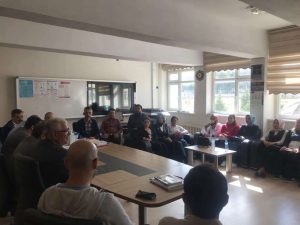Öğretmenlerle de bir araya gelen Yazıcı, öğrencilerin duyuşsal alanla ilgili gelişimlerinde karşılaştıkları sorunlar ile bu sorunların tespiti, analiz edilmesi ve çözüm odaklı bir planlama yapılarak çalışmaların planlanıp izlenmesi, konularına değinerek, her sonucun bir sürecinin olduğu ve sonuçlara etki eden süreçlerin iyi yönetilmesinin olumsuz sonuçları minimize edeceği gerçeğinden hareketle süreç-sonuç ilişkisinin takibinin öneminden bahsetti.