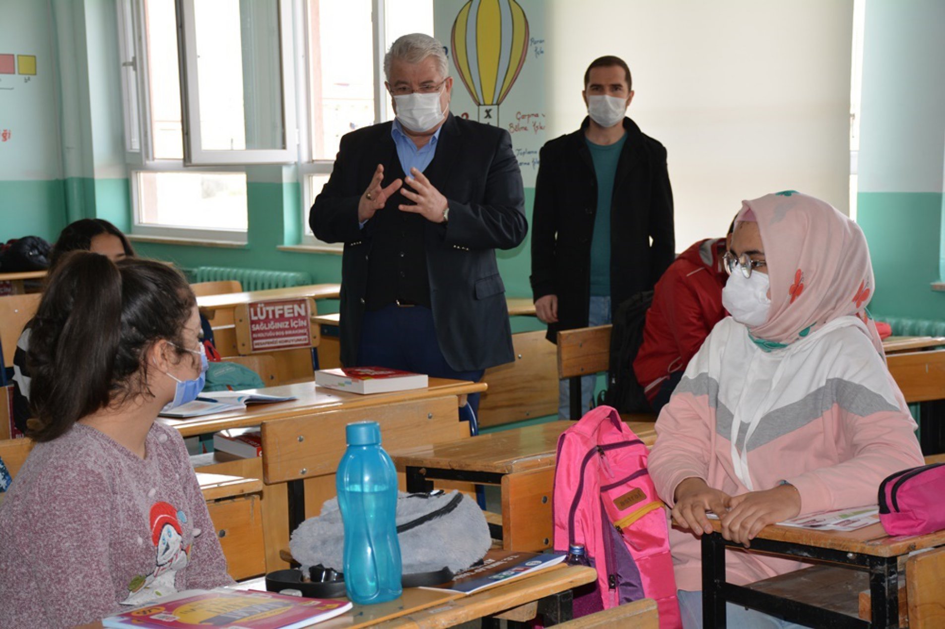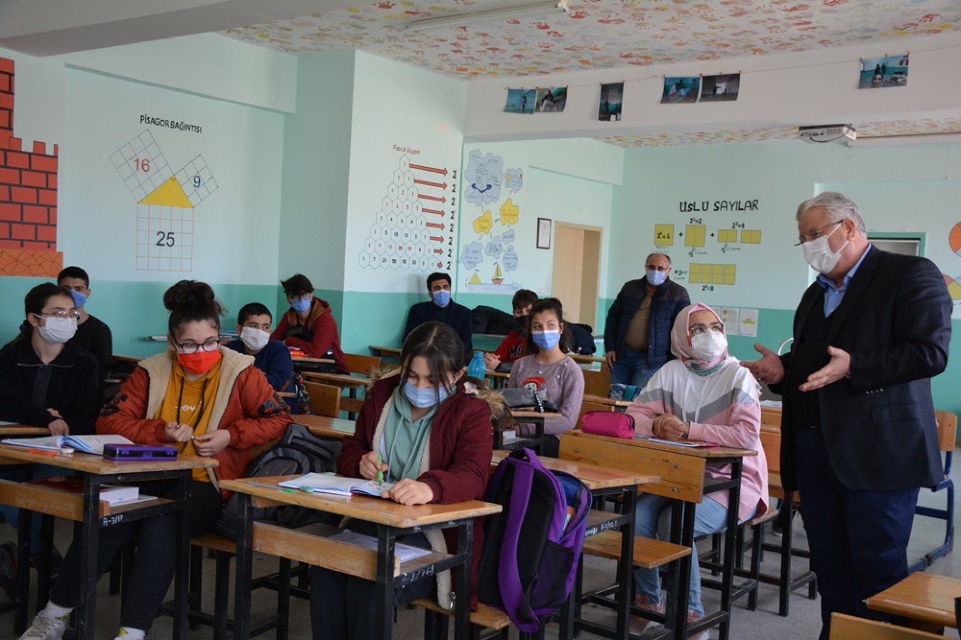 Ziyarette, öğrencilerle eğitim üzerine sohbet eden yazıcı, öğrencilerin istek ve taleplerini alarak, maske, sosyal mesafe ve el hijyeni konusunda dikkat edilmesi gereken hususlardan bahsetti.