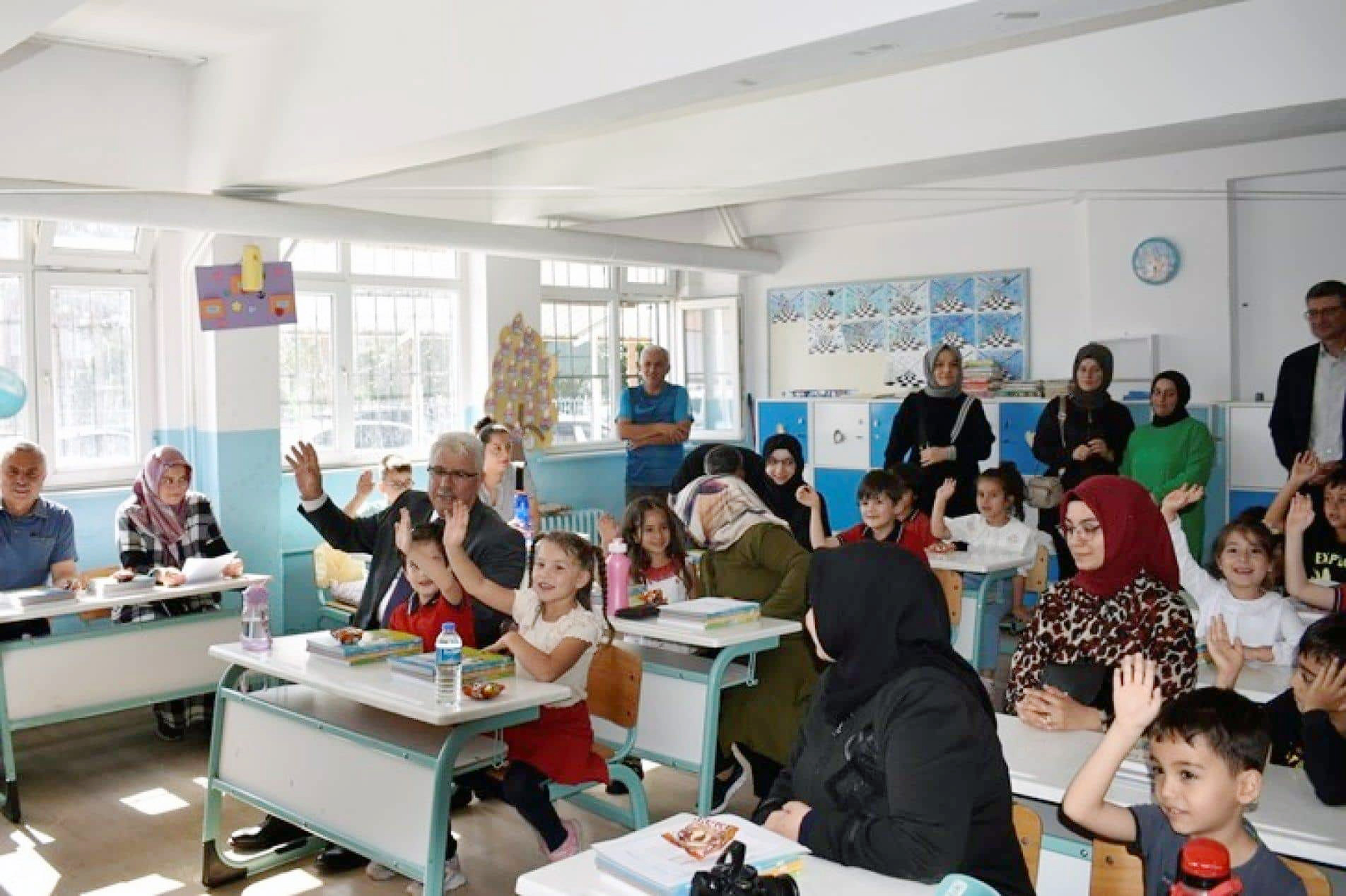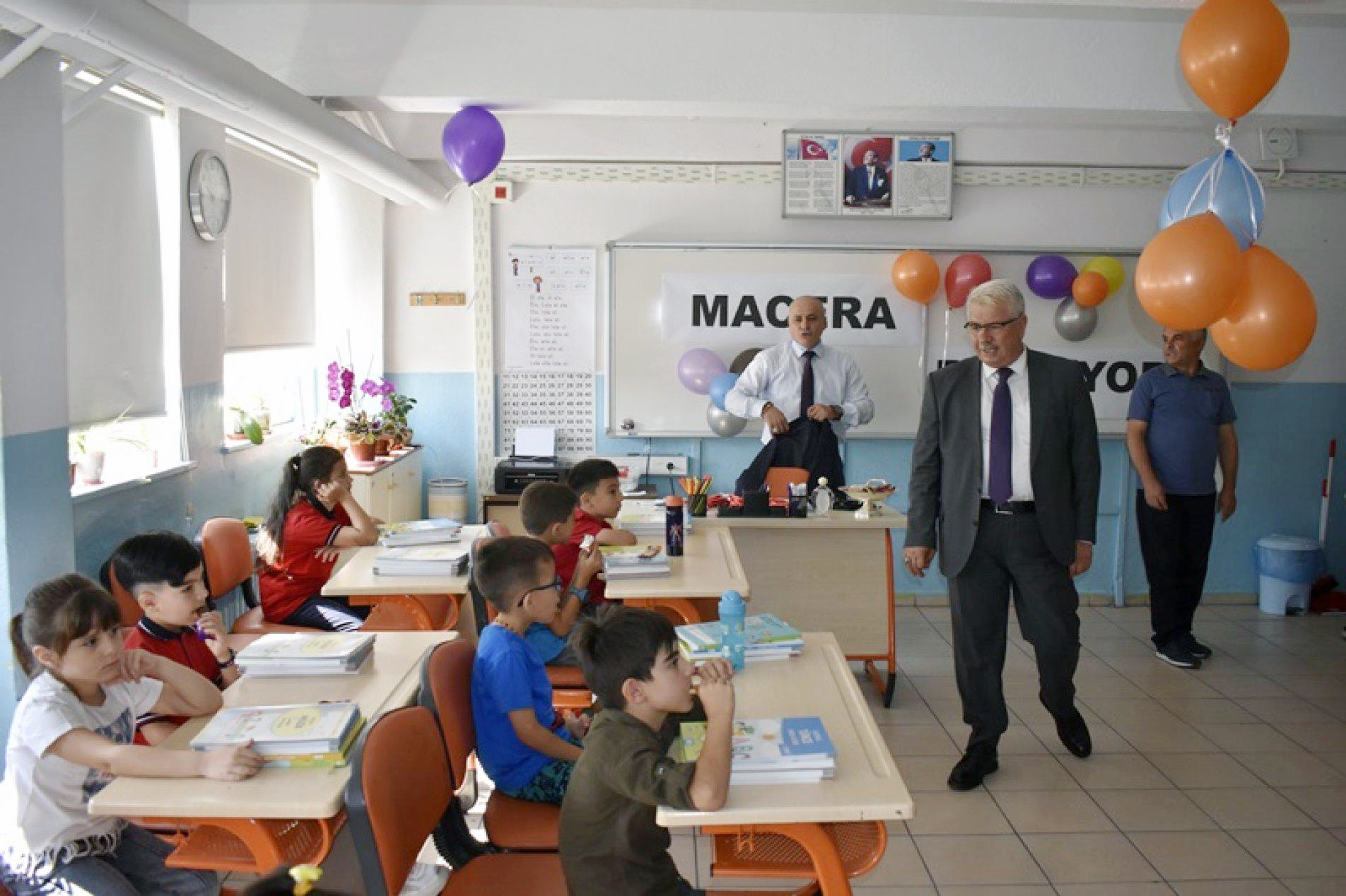 Yazıcı, ziyarette, uyum eğitimi kapsamında okula yeni başlayan okul öncesi ve birinci sınıf öğrencilerinin heyecanına ortak oldu.