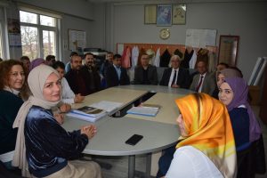 Öğretmenlerle de bir araya gelen Yazıcı, öğrenci ve velilere yönelik uygulanacak olan rehberlik hizmetleri, ESER projesi, ulusal projeler ve öğrencilerin okul içinde motivasyonunu arttıracak etkinlikler konularına değinerek fikir alışverişinde bulundu.