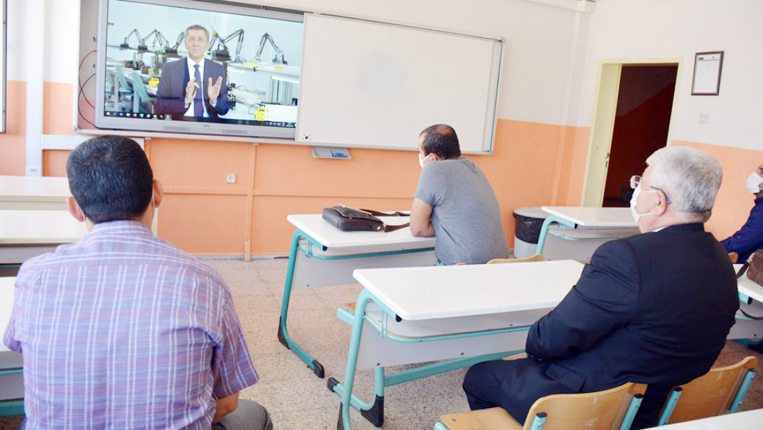 Yozgat İl Milli Eğitim Müdürü Yusuf Yazıcı, 24-28 Ağustos tarihleri arasında öğretmenlere yönelik okullarda yüz yüze yapılacak olan seminer çalışmaları kapsamında Fatma Temel Turhan Ortaokulunu ziyaret ederek, Millî Eğitim Bakanı Selçuk’un EBA üzerinden gerçekleştirdiği açılış konuşmasını öğretmenlerle birlikte izledi.
