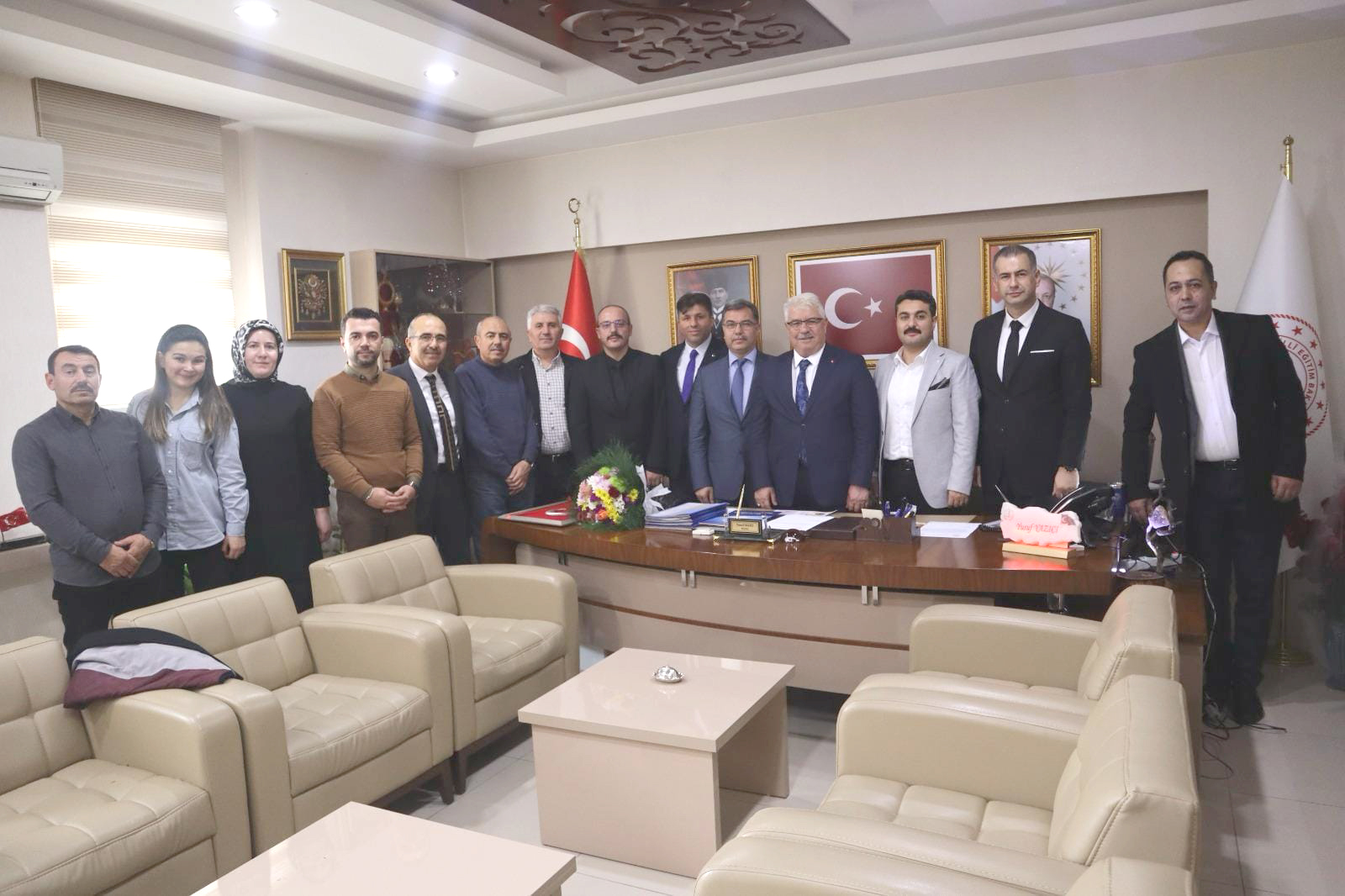 Yozgat İl Milli Eğitim Müdürü İsmail Altınkaynak, beraberinde Müdür Yardımcısı Fatih Erdoğan, Selçuk Doğandemir ve diğer müdürlük yöneticileriyle birlikte Nevşehir İl Milli Eğitim Müdürü Yusuf Yazıcı’ya hayırlı olsun ziyaretinde bulundu.