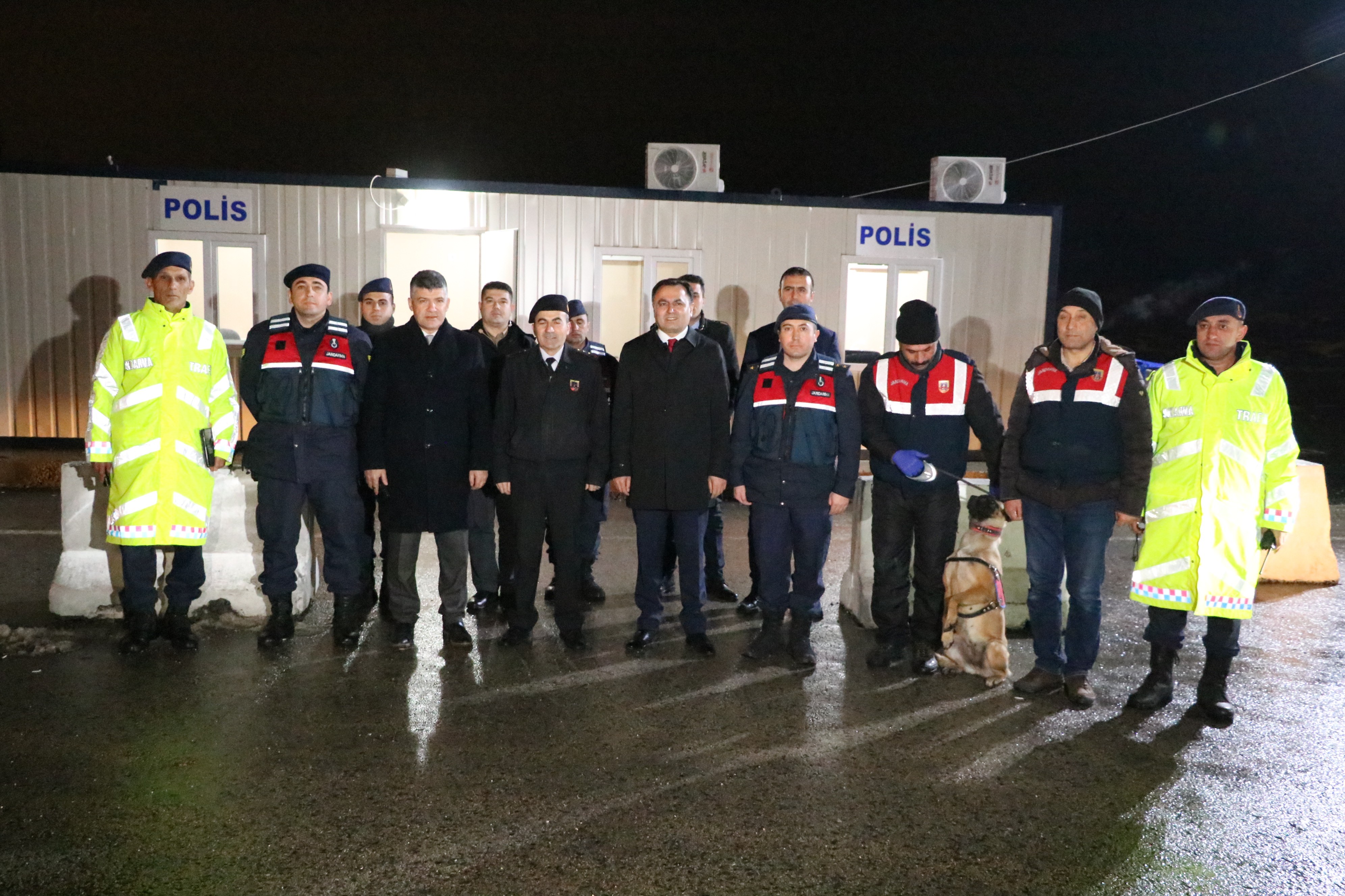 Jandarma ekipleri şehir girişinde uygulama noktasında durdurulan araçlarda narkotik köpekleriyle arama yaptı.