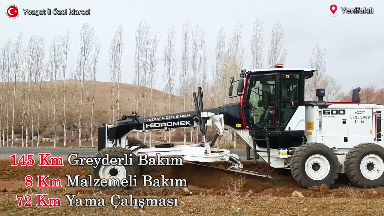 Yenifakılı ilçesinde yapılan yatırımlar arasında 0,7 kilometre sıcak asfalt, 145 kilometre greyderli bakım, 8 kilometre malzemeli bakım ve 72 kilometre yama çalışması yer alıyor. Ayrıca, 7 köyde toplam 124 kilometre karla mücadele çalışması yapılarak kış şartlarında ulaşımın daha güvenli hale gelmesi sağlandı. İlçeye kazandırılan diğer bir önemli yatırım ise 3913 metrekare kilitli parke döşenmesi oldu.