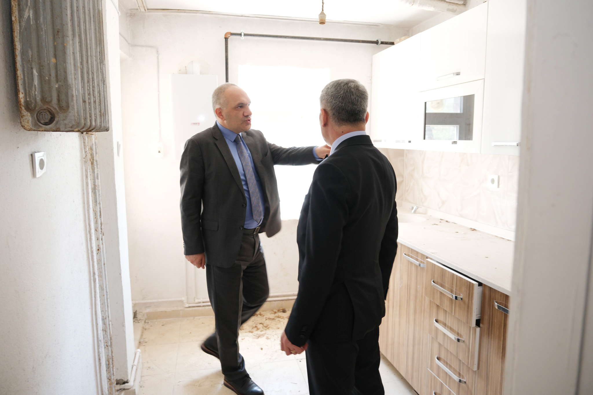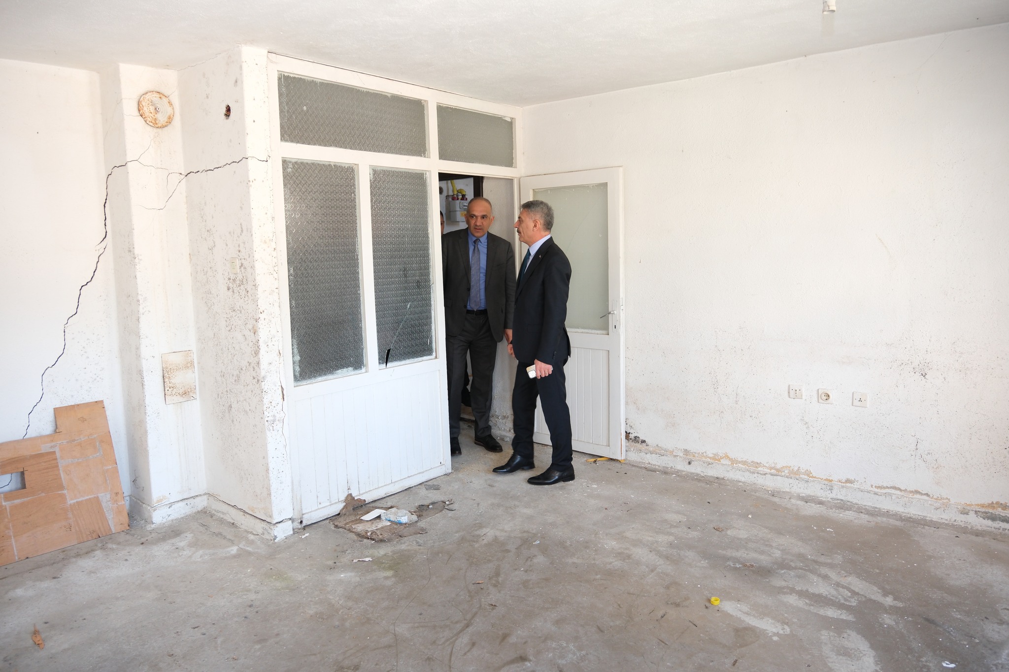 Yozgat Valisi Mehmet Ali Özkan, yenilenmesi planlanan Erdoğan Akdağ Mahallesi’ndeki polis lojmanlarında incelemelerde bulundu.