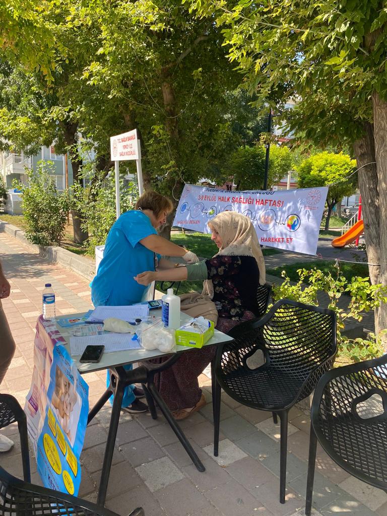 Etkinlikler sırasında vatandaşlara sağlıkla ilgili broşürler dağıtıldı ve çeşitli sağlık taramaları yapıldı. Bu taramalar arasında açlık kan şekeri ölçümleri, boy-kilo ölçümleri ve tansiyon ölçümleri gibi önemli sağlık göstergelerinin izlenmesi yer aldı. Ayrıca, aşırı tuz tüketimi, metabolik hastalıklar, diyabet, fiziksel aktivite ve sağlıklı beslenme konularında bilgilendirme eğitimleri verildi.