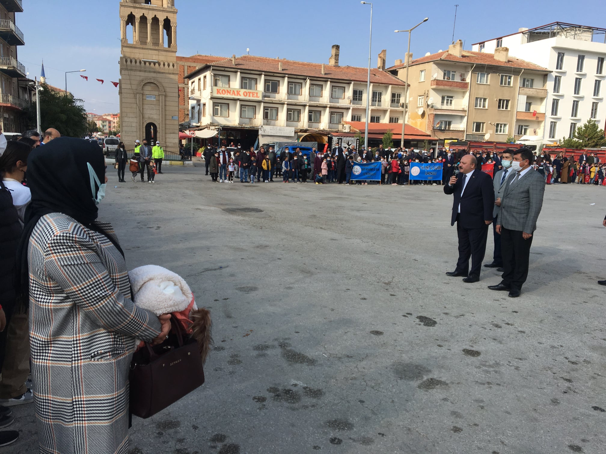 Tören alanında Kaymakam Mustafa Karaca, halkın, öğrencilerin ve protokolün bayramını kutladı.