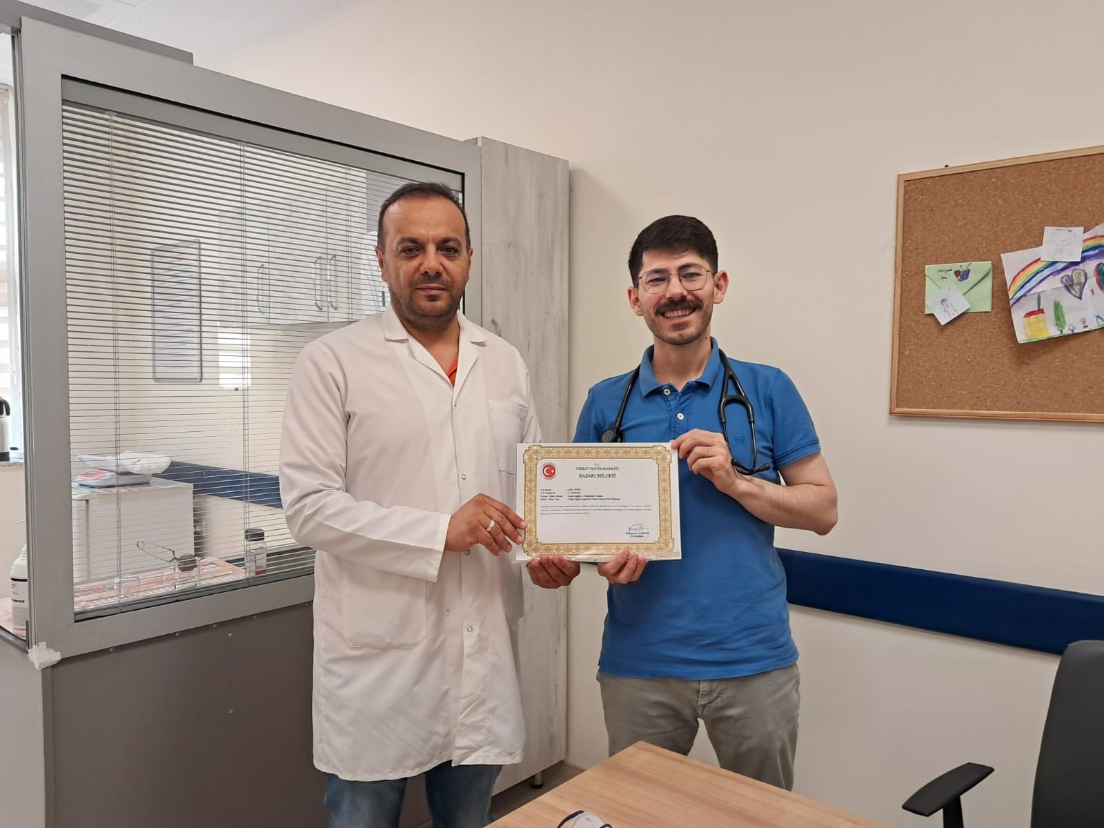 Hastane Başhekimi Uzman Doktor Ali Demir, Kaymakam Muharrem Coşgun’a teşekkür ederek, başarı belgelerini hekim arkadaşlarına takdim etti. Çocuk Sağlığı ve Hastalıkları Uzmanı Uzm. Dr. Adil Güzel, Dahiliye Uzmanları Uzm. Dr. Ayşe Özbek ve Uzm. Dr. Ferhat Çelik ile Göğüs Hastalıkları Uzmanı Uzm. Dr. Deniz Seyfi’ye başarı belgeleri verildi.