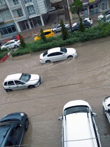 Yerköy’de etkili olan sağanak yağış yolları göle çevirdi. Yaklaşık yarım saat süren şiddetli yağış nedeniyle ilçede yollarda su birikintileri kaldırımlardan taştı.