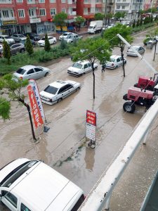 Yerköy’de etkili olan sağanak yağış yolları göle çevirdi. Yaklaşık yarım