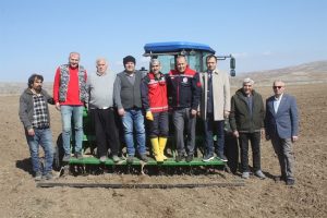 Yozgat’ta yerli mercimek çeşitlerinin yaygınlaştırılması çalışmaları kapsamında Yeşil Mercimek demonstrasyon ekimleri gerçekleştirildi. Sorgun İlçesine bağlı Şahmuratlı köyünde yapılan demonstrasyon ekimine İl Müdürü Tanju Özkaya, İlçe Müdürü Yusuf Canbolat, İl ve İlçe teknik personeli ile çiftçiler katıldı.