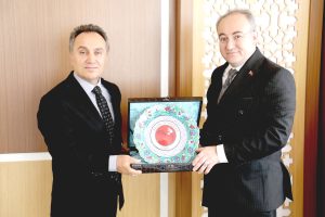 Ziyaretin sonunda mevkidaşlar, günün anısına karşılıklı hediye takdiminde bulundu. Haber Merkezi