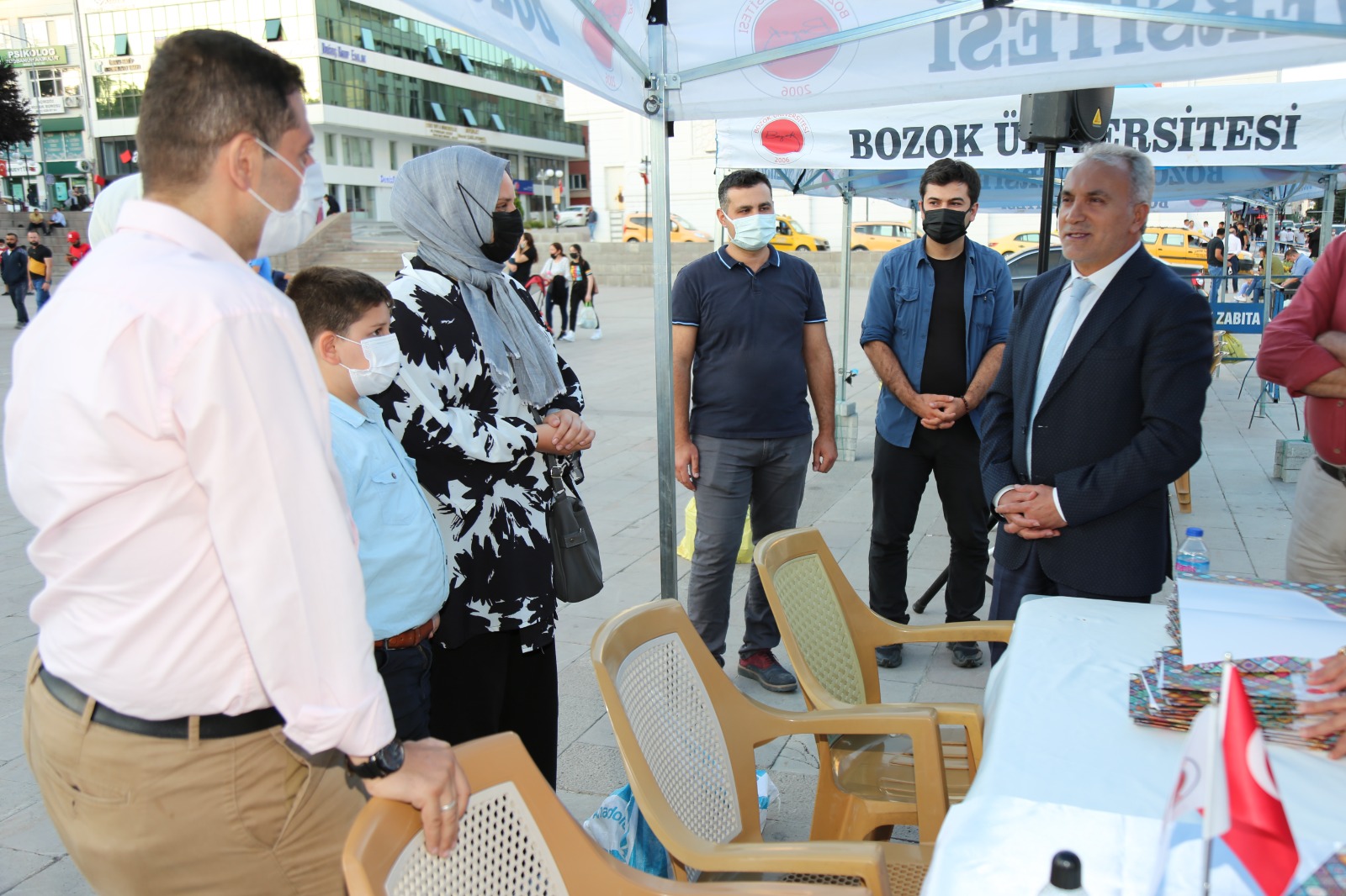 Yozgat Bozok Üniversitesi Rektörü Prof. Dr. Ahmet Karadağ, tercih döneminde öğrencilere yön göstermek, üniversitemiz bölüm ve programlarını tanıtmak amacıyla Yozgat Cumhuriyet Meydanı’nda açılan “YKS Tercih Danışma” standını ziyaret etti.