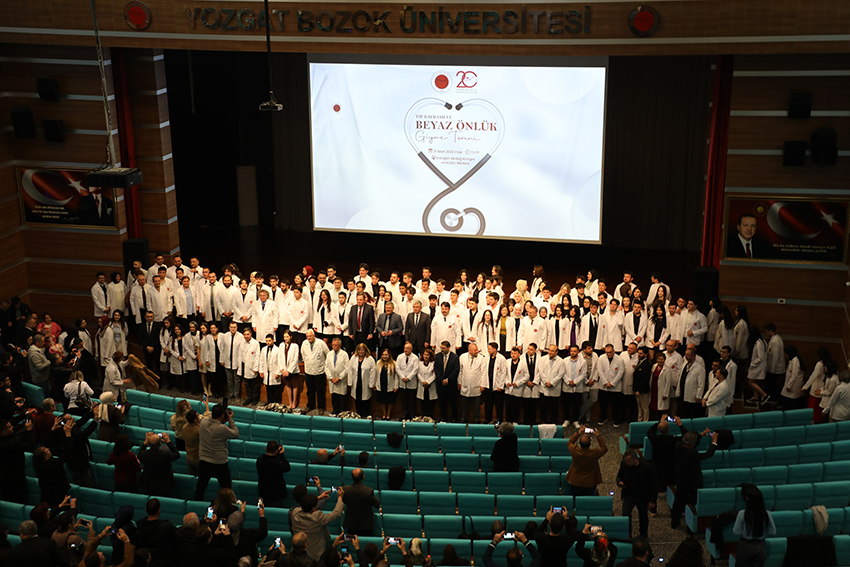 Yozgat Bozok Üniversitesi Tıp Fakültesi, 2025-2026 eğitim-öğretim yılına başlayan 136 hekim adayı için “Tıp Bayramı ve Beyaz Önlük Giyme Töreni” düzenledi. Erdoğan Akdağ Kongre ve Kültür Merkezi’nde gerçekleşen törende öğrenciler, aileleri önünde mesleki yaşamlarının simgesi olan beyaz önlüklerini giymenin gururunu yaşadı.