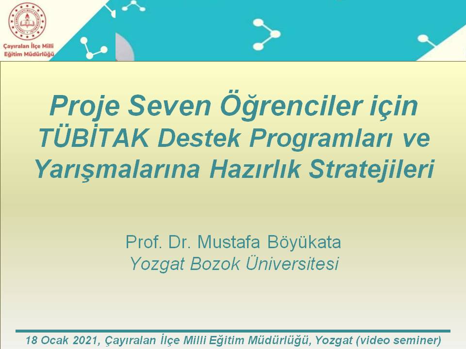 Yozgat Bozok Üniversitesi Öğretim Üyesi Prof. Dr. Mustafa Böyükata, Çayıralan İlçe Milli Eğitim Müdürlüğü’nün isteği üzerine, uzaktan eğitim yoluyla ilçede okuyan ortaokul ve lise öğrencilerine yönelik proje konulu seminer verdi.