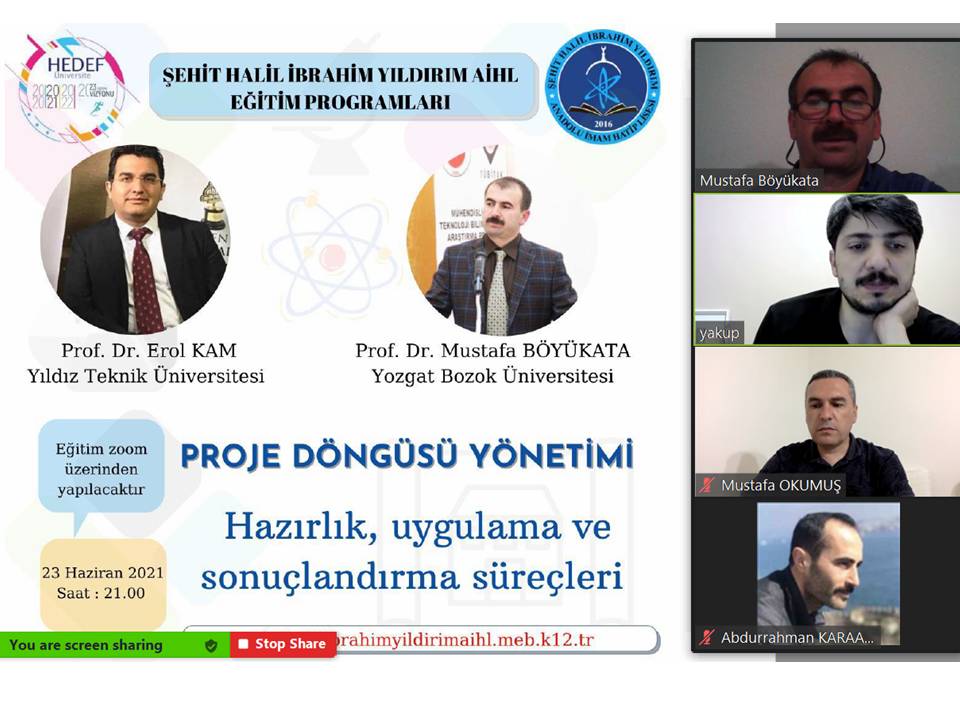 Yozgat Bozok Üniversitesi Öğretim Üyesi Prof. Dr. Mustafa Böyükata, İstanbul – Şehit Halil İbrahim Yıldırım Anadolu İmam Hatip Lisesi öğretmenlerine 23 Haziran 2021 Çarşamba akşamı uzaktan seminer verdi.
