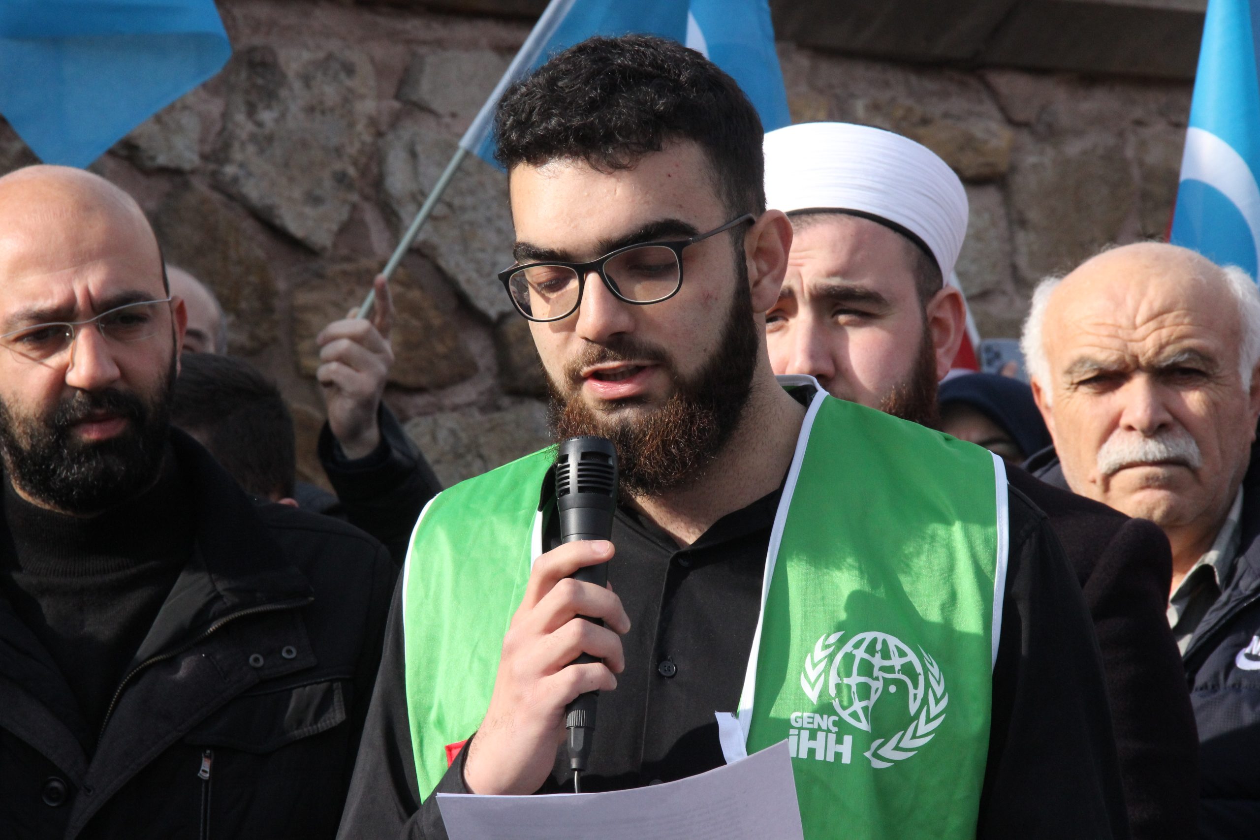 Yozgat İnsani Yardım Vakfı (İHH) adına basın açıklaması yapan Arif Koşun, Çin hükümetinin özellikle 2017 yılından buyana sayılarının 1200’ü geçtiği belirtilen toplama kamplarında 1 ila 3 milyon kişiyi zorla alıkoyduklarını söyledi.