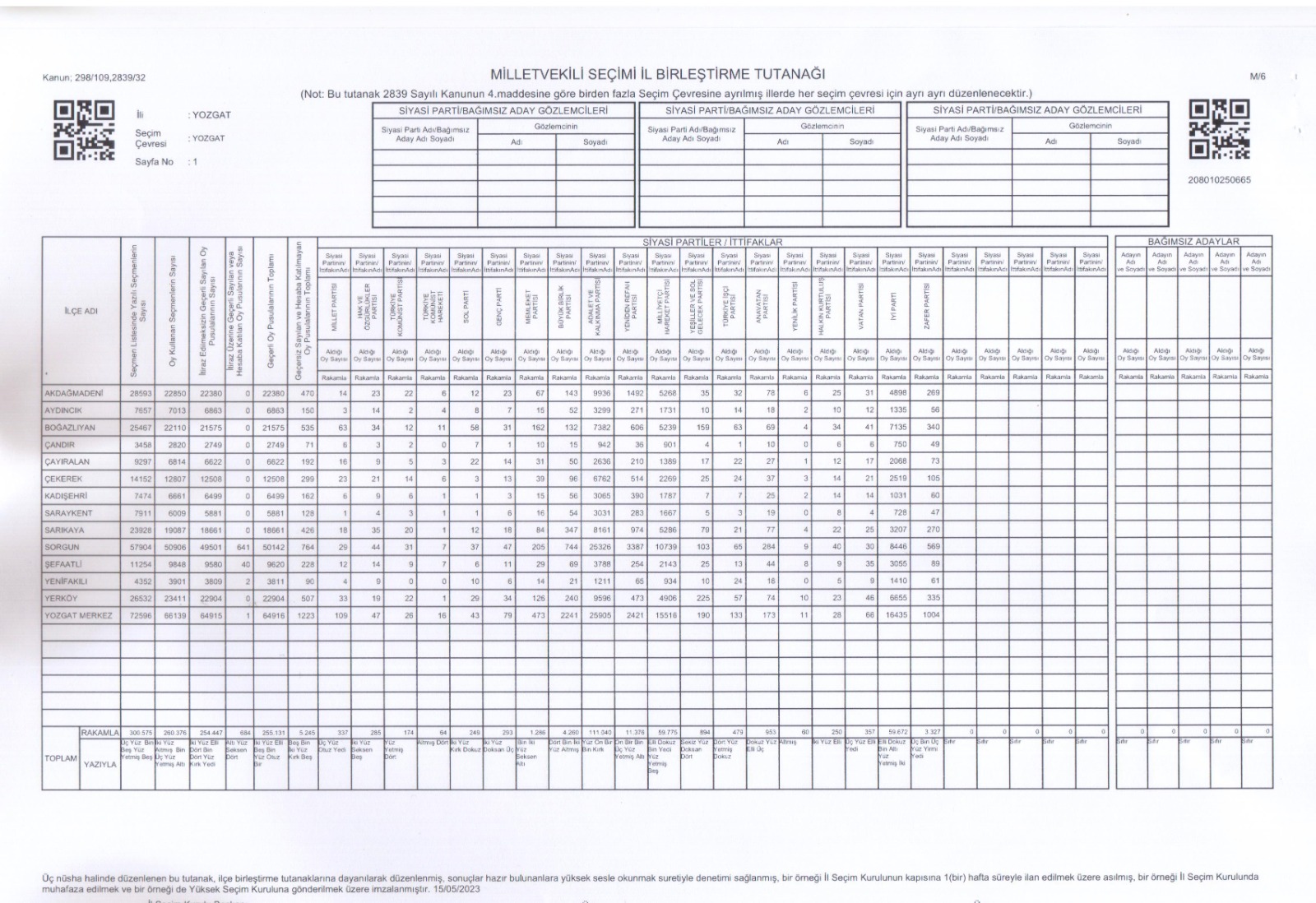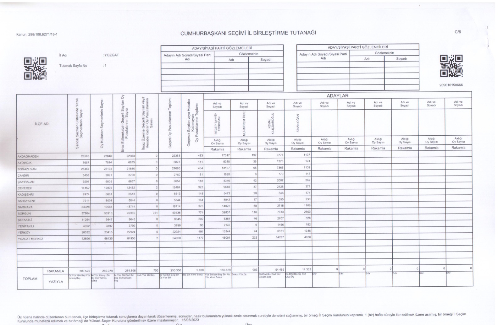 Tüm yurtta olduğu gibi Pazar günü Yozgat’ta da yapılan seçimde cumhurbaşkanı adayları ile siyasi partilerin ilçelere göre aldıkları oy dağılımı tablosu da şöyle oluştu: