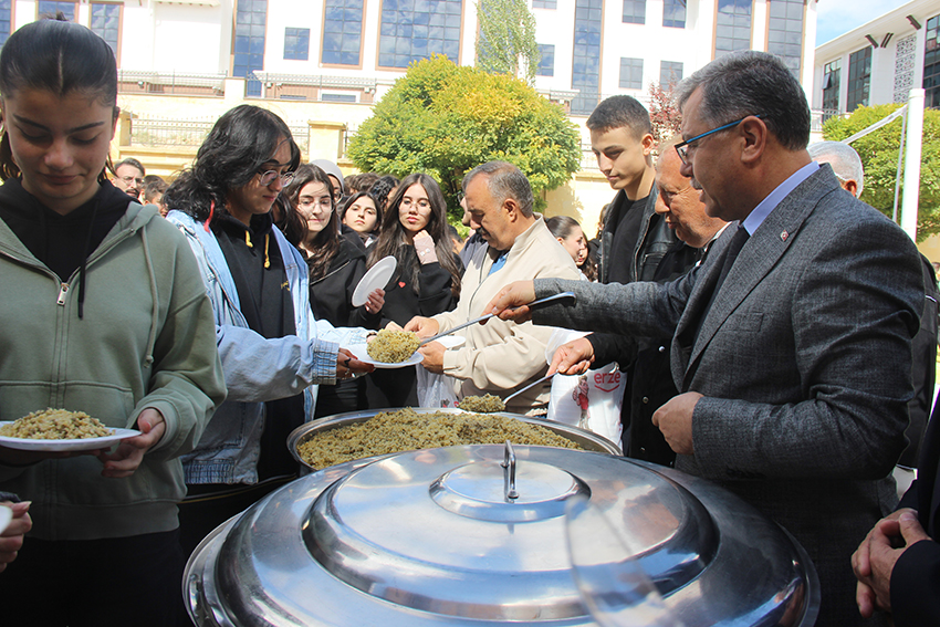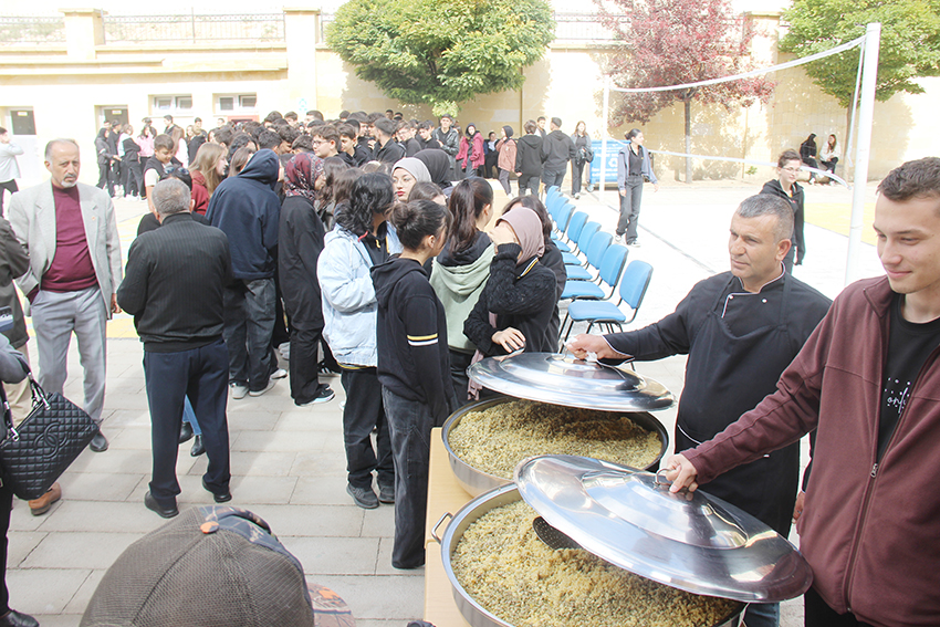 Yozgat’ın köklü eğitim kurumlarından Tarihi Yozgat Lisesi’nin bahçesinde düzenlenen “Mercimekli Bulgur Pilav Günü,” şehrin yöresel ürünlerini ve tarımsal değerlerini öğrencilerle buluşturdu. Etkinliğe katılan Yozgat İl Milli Eğitim Müdürü İsmail Altınkaynak ve İş İnsanı Mustafa Erkılıç, öğrencilere pilav ikramında bulundu.