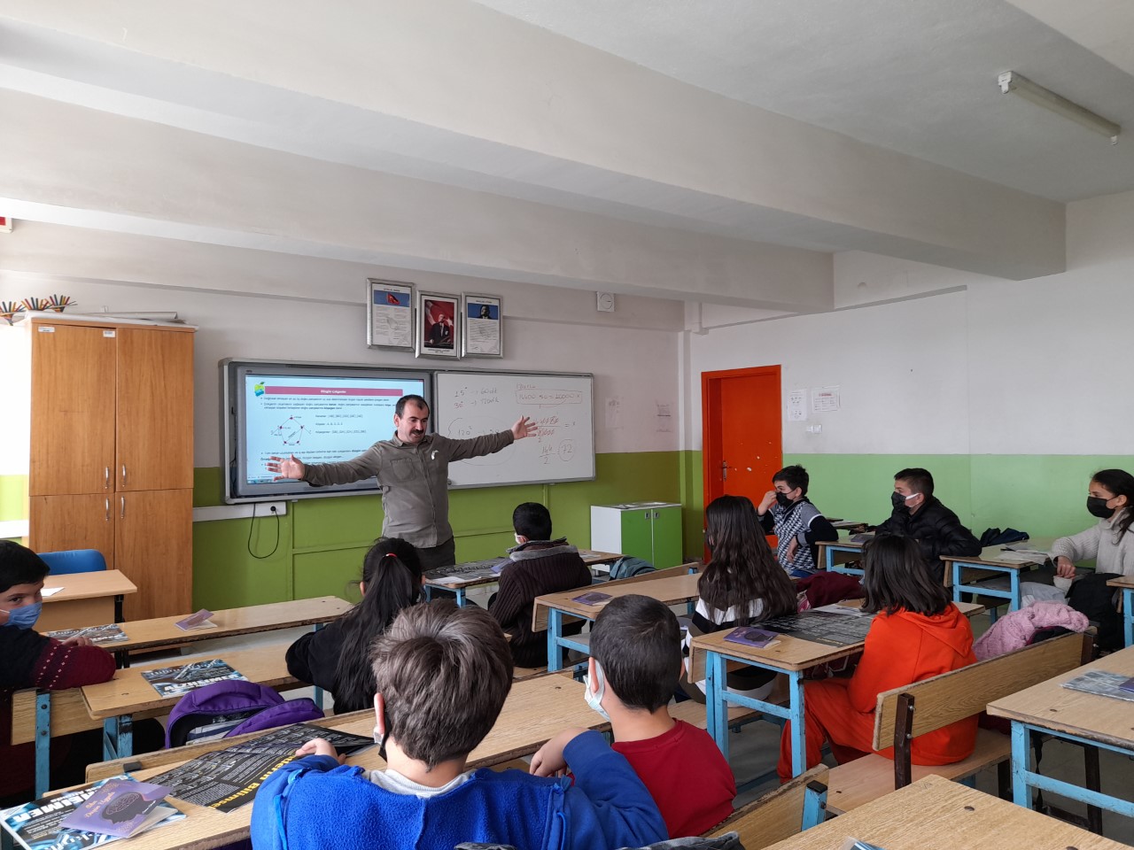 Öğrencilere dağıtılmProf. Dr. Mustafa Böyükata girdiği sınıflarda öğrencilerle tatlı sohbetler gerçekleştirdi. Onlara yaşadıkları çevreden başlayarak merak uyandırıcı konularda sorular sordu ve onların sorularına cevaplar verdi. Akıcı, coşkulu ve heyecan verici atmosfer oluşturan Prof. Dr. Mustafa Böyükata, bilime ve bilim insanlarına sözü getirerek bilim okuryazarlığı konusunda çocuklarda farkındalık oluşturmaya çalıştı. Aziz Sancar ve diğer öncü bilim insanlarından örnekler vererek Bişek’te eğitim gören çocukların arasından da tüm insanlık için faydalı çalışmalar yapacak öncü kişilerin çıkabileceğini anlattı.