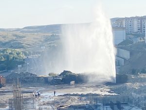 Yozgat’ın Sarıhacılı Mahallesi’nde devam eden bir lise inşaatı sırasında yaşanan beklenmedik bir olay, şehrin ana su boru hattının patlamasına yol açtı.
