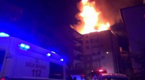 Yozgat’ta , 8 katlı apartmanın çatısında başlayan ve bitişikteki binaya