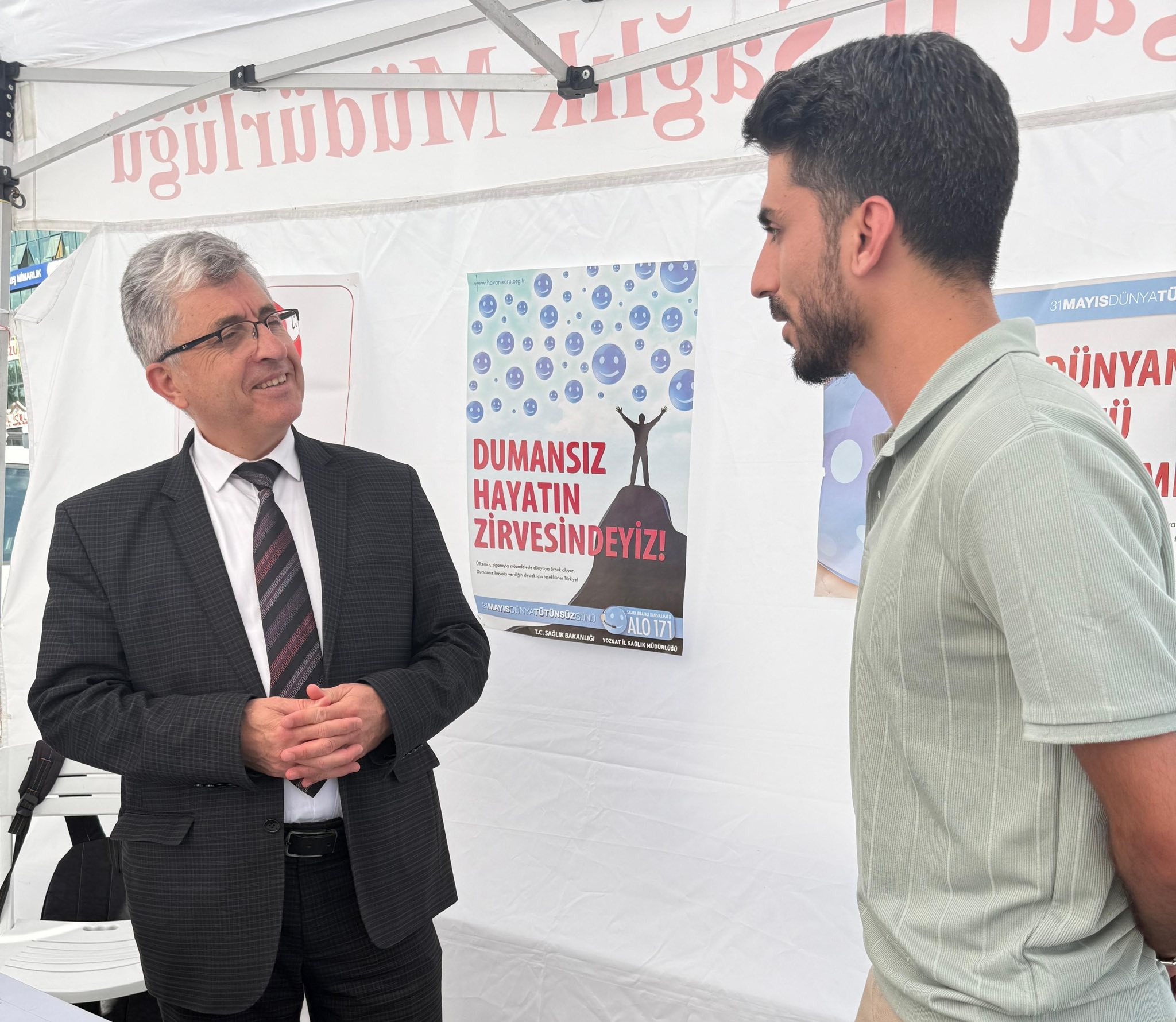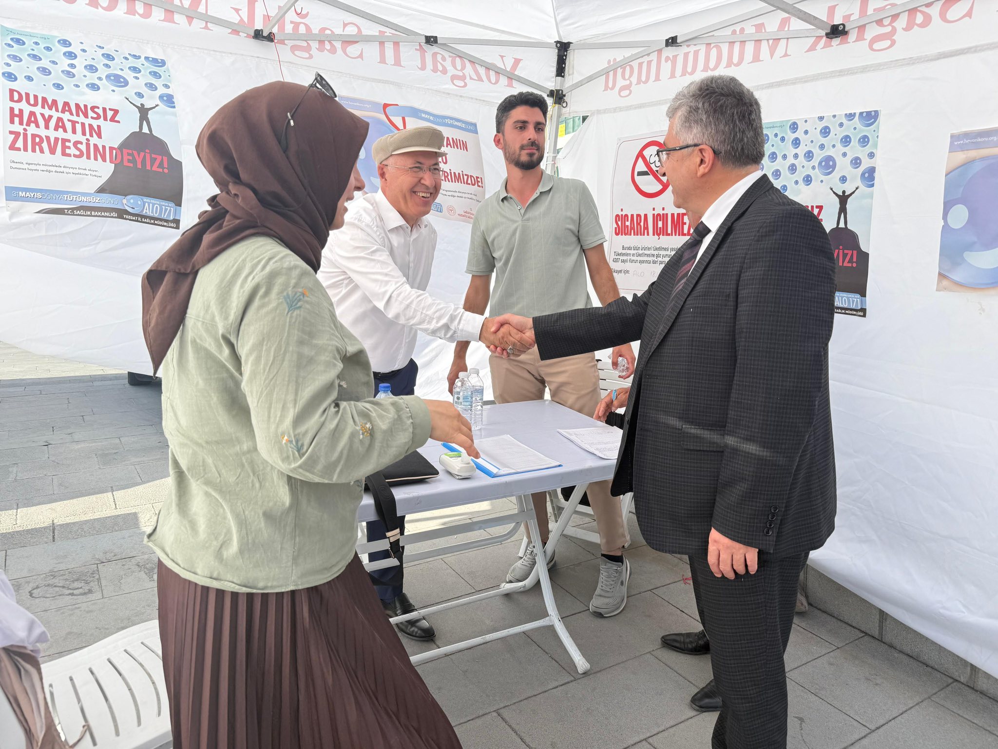 Mobil danışmanlık çadırını İl Sağlık Müdürü Dr. Mehmet Akif Karaarslan, Yozgat Bozok Üniversitesi Tıp Fakültesi Halk Sağlığı Anabilim Dalı Öğretim Üyesi Prof. Dr. Mahmut Kılıç ve Halk Sağlığı Hizmetleri Başkan Yardımcısı Uz. Dr. Hanife Ece Erik ziyaret etti.