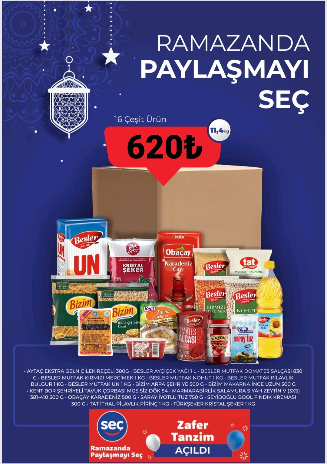 Gıda paketlerinin fiyat aralıkları hakkında da bilgi veren Arık, “Paketlerimiz 620 liradan başlayıp 1000 lira ve üzerine kadar çıkabiliyor. İçeriği ise talebe göre değişebiliyor. Ancak genel olarak her yıl olduğu gibi temel gıda ürünlerinden oluşuyor. Paketlerimizde margarin, sıvı yağ, şeker, un, çay, pirinç, makarna, peynir, zeytin gibi temel ihtiyaç ürünleri bulunuyor” ifadelerini kullandı.